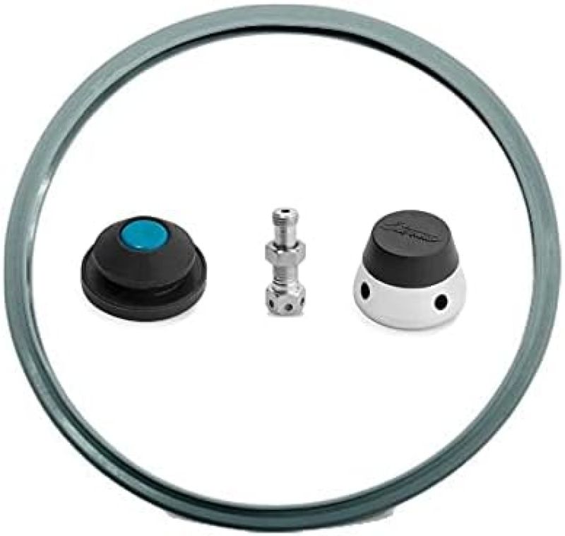 Kit de acessórios básicos para reposição nas panelas da linha Eterna Nigro. Envio imediato em até 24 horas. Compatível com as panelas de pressão da linha ETERNA da NIGRO dos tamanhos:- Eterna 3,0 litros (polidas, antiaderentes ou coloridas);- Eterna 4,5 litros (polidas, antiaderentes ou coloridas);- Eterna 6,0 litros (polidas, antiaderentes ou coloridas). PRODUTO ORIGINAL DE FÁBRICA. Não use peças paralelas na sua panela de pressão, garanta sempre sua segurança e da sua família. Somos representantes autorizados da fábrica NIGRO. Compra totalmente segura ! Características da borracha: - Marca: Original NIGRO - Diâmetro: 24,4 cm - Atende ao requisitos da norma ABNT NBR 15684 - Atóxico Cuidados com seu Anel de Borracha: - Antes de fechar a sua panela de pressão para uso, verifique se a Borracha está na posição correta e bem encaixado. Caso não esteja, poderá ser danificado pelo fechamento incorreto da tampa;- Após usar sua panela de pressão, retire a Borracha e lave-o com água, sabão ou detergente neutro e uma esponja macia;- Verificar regularmente as condições da Borracha quanto ao desgaste e substitua-o a cada 2 anos ou quando necessário. Contém:- 1 borracha anel de silicone ETERNA;- 1 peso ou válvula de alívio de pressão;- 1 válvula de segurança repetitiva de silicone;- 1 pino central. ATENÇÂO: Verificar se a borracha é compatível com o modelo da sua panela, antes de finalizar a compra. Compare com as fotos do anúncio.