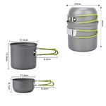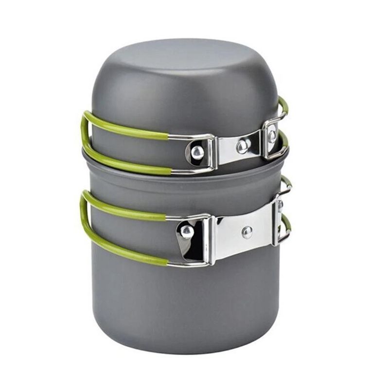 Kit Panelas Camping Aluminio Kit Cozinha Acampamento Outdoor Panela Viagem Praia Pesca Com Bolsa SacolaKit de Panelas para Camping com 2 peçasEste kit de cozinha conta com 2 panelas.As panelas são feitas em alumínio anodizado, que faz com que seja sólidas e leves, e resistentes a altas temperaturas e abrasão.O kit se torna bem compacto pois os cabos das panelas podem ser dobrados e as panelas e demais itens se encaixam uns nos outros.O kit pode ser armazenado em um saco de rede para o .É próprio para Camping, Caminhadas, Acampamentos, Piqueniques e Outras Atividades Ao Ar Livre, pois é bem leve e pequeno, não ocupando muito espaço em sua mochila.Especificações:- Material: Alumínio- Panela grande Tamanho (Diâmetro x Altura): 12,4 x 10,6 cm- Panela pequena Tamanho (Diâmetro x Altura): 11,6 x 6,5 cm- Indicado para: 1 pessoa cozinhar- Embalagem: Saco de Rede para guardar- Peso: 226gConteúdo da embalagem:- 1 x Panela Grande- 1 x Panela PequenaKit de Panelas para Camping com 2 peçasEste kit de cozinha conta com 2 panelas.As panelas são feitas em alumínio anodizado, que faz com que seja sólidas e leves, e resistentes a altas temperaturas e abrasão.O kit se torna bem compacto pois os cabos das panelas podem ser dobrados e as panelas e demais itens se encaixam uns nos outros.O kit pode ser armazenado em um saco de rede para o .É próprio para Camping, Caminhadas, Acampamentos, Piqueniques e Outras Atividades Ao Ar Livre, pois é bem leve e pequeno, não ocupando muito espaço em sua mochila.Especificações:- Material: Alumínio- Panela grande Tamanho (Diâmetro x Altura): 12,4 x 10,6 cm- Panela pequena Tamanho (Diâmetro x Altura): 11,6 x 6,5 cm- Indicado para: 1 pessoa cozinhar- Embalagem: Saco de Rede para guardar- Peso: 226gConteúdo da embalagem:- 1 x Panela Grande- 1 x Panela Pequena