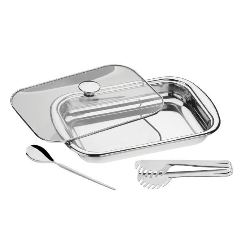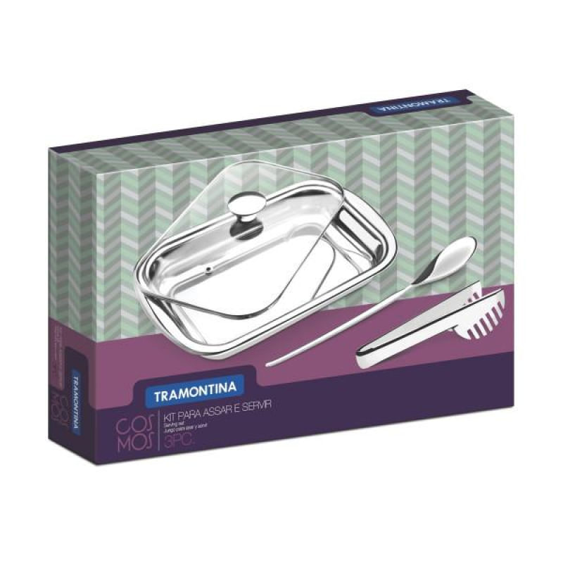 Kit para Assar e Servir Tramontina Cosmos em Aço Inox com Tampa de Vidro 3 Peças <br><br> Beleza e praticidade na mesa. O Kit para Assar e Servir Tramontina Cosmos em Aço Inox com Tampa de Vidro 3 Peças é ideal para assar e servir com elegância. Com peças feitas em aço inox, mantêm suas características originais, preservando a beleza, a higiene e a durabilidade do material. Com design moderno proporciona requinte ao compor a mesa e a tampa de vidro transparente que permite a visualização dos alimentos. A Linha Cosmos é feita para cozinhar com amor e beleza. <br><br> Peças feitas em aço inox, mantêm suas características originais, preservando a beleza, a higiene e a durabilidade do material. <br>Acabamento em brilho. <br>Design moderno proporciona requinte ao compor a mesa. <br>Ideal para assar e servir. <br>Podem ser lavadas diariamente na máquina de lavar louças. <br>Com tampa de vidro transparente que permite a visualização dos alimentos.