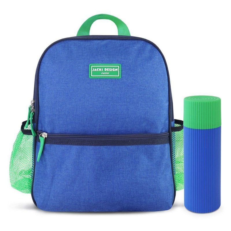 Kit Para Passeios: Mochila Infantil E Porta Itens Jacki Design AzulKit para Passeios: Mochila Infantil e Porta Itens Jacki Design Azul -Kit Mochila Infantil + Porta Acessórios Multiuso – Jacki DesignPraticidade, estilo e qualidade em um só kit! A coleção Júnior da Jacki Design foi desenvolvida para acompanhar crianças e adolescentes no dia a dia escolar e também nos passeios.Mochila Infantil Junior:Mochila Escolar Júnior Com design moderno e funcional, a mochila é confeccionada em microfibra resistente, oferecendo durabilidade e conforto. Suas alças acolchoadas tornam o transporte mais leve, e os compartimentos bem distribuídos garantem praticidade. Possui bolso frontal, bolsos laterais para garrafinha e fecho em zíper.Medidas: 26,5 cm (C) x 10 cm (L) x 32 cm (A)Material: Microfibra Cuidados: Limpar com pano úmido; se necessário, utilizar sabão neutro ou álcool. Secar à sombra. Não lavar em máquina, não deixar de molho e não utilizar produtos químicos.Porta Acessórios Multiuso:Compacto e versátil, é ideal para armazenar escova e pasta de dentes; lápis, caneta e itens escolares ou pequenos objetos pessoais. Perfeito para usar na escola, em viagens ou passeios.Medidas: 6 cm (C) x 6 cm (L) x 19 cm (A) Material: PolipropilenoDica: Este kit é uma ótima escolha para presentear ou organizar melhor o dia a dia dos pequenos com itens práticos, duráveis e cheios de charme!Acompanha o produto: - 1 MOCHILA1 PORTA ACESSORIOS