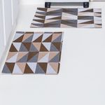 Kit Passadeira Tapete Cozinha 3 Peças Jacquard Base Antiderrapante - Losango Avelã