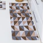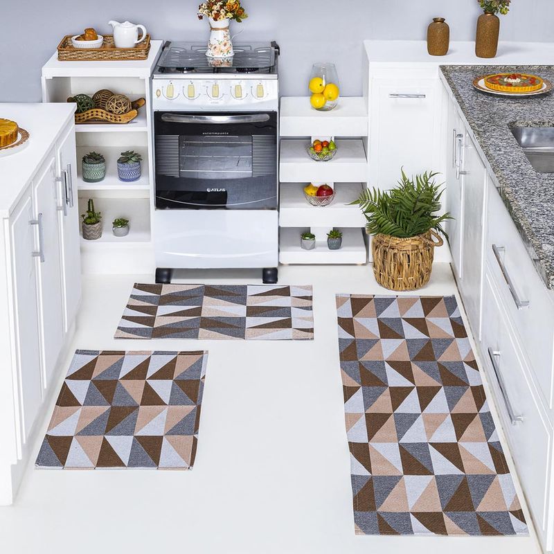 Casa e ConstruçãoDecoraçãoTapetePassadeiraKit Passadeira Tapete Cozinha 3 Peças Jacquard Base Antiderrapante - Losango Avelã