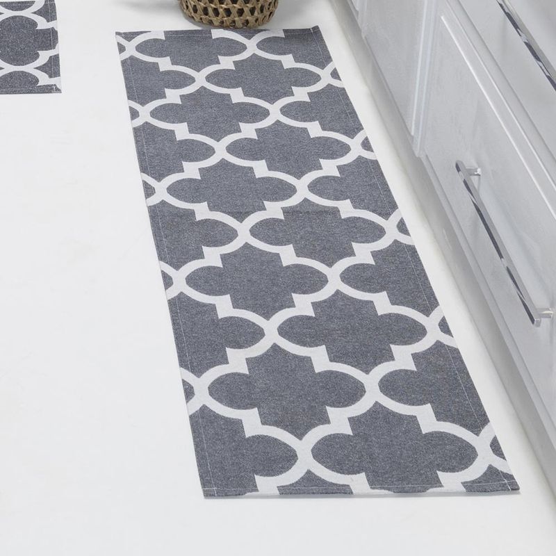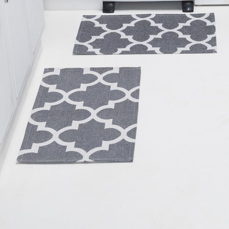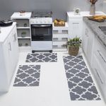 Casa e ConstruçãoDecoraçãoTapetePassadeiraKit Passadeira Tapete Cozinha 3 Peças Jacquard Base Antiderrapante - Medalhão Cinza