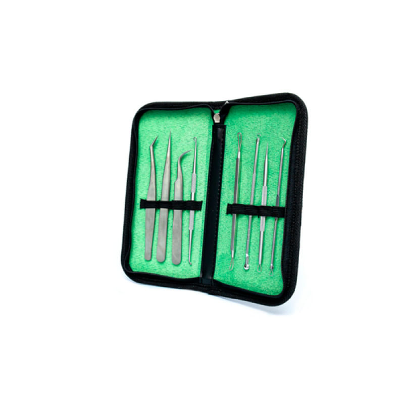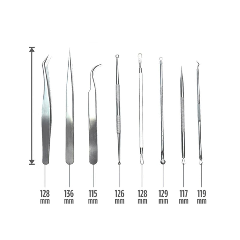 Kit Pinças e Curetas 08 Peças - Doutor da Estética - Descrição do Produto A Kit Pinças e Curetas da Doutor da Estética é um equipamento desenvolvido para quem busca precisão, segurança e durabilidade em procedimentos faciais. Projetado para profissionais da saúde estética, ele oferece instrumentos resistentes, práticos e organizados para a rotina clínica. Diferenciais e Benefícios: * Fácil: Fácil higienização e esterilização; * Qualidade: Kit completo com 8 instrumentos essenciais. Com um estojo organizador para transporte seguro; * Otimização: desenvolvido para otimizar resultados em procedimentos de limpeza de pele e manipulação estética; * Durabilidade: Alta durabilidade com aço inoxidável; Indicações: * Indicado para procedimentos como extração de cravos, limpeza de pele profunda e manipulação precisa de materiais em atendimentos estéticos. Além disso, o kit também é utilizado para aplicação e extensão de cílios, proporcionando controle total sem contato direto com as mãos, garantindo segurança ao profissional e ao cliente. Contraindicações: * Este equipamento não possui contraindicação; Especificações: * Marca: Doutor da Estética; * Modelo: Kit Pinças e Curetas; * Material: Aço inoxidável resistente à ferrugem; * Quantidade de peças: 8 instrumentos (3 pinças + 5 curetas); * Finalidade: Procedimentos estéticos e limpeza de pele; * Esterilização: Autoclavável, higienização com álcool ou clorexidina; * Estojo: Incluso, para transporte e organização segura; * Ergonomia: Ferramentas com empunhadura confortável e tamanho ideal para manuseio; * Tipo de uso: Uso profissional, individual, com higienização obrigatória; Dimensões da Embalagem: * 21 cm x 14 cm x 3 cm (CxLxA) * Peso: 160Kg Características Gerais do Produto: Acompanha o produto: • 03 pinças de precisão • 05 curetas para extração e limpeza de pele