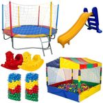 Kit Pula Pula 2,44m + Piscina De Bolinhas 1,50m + 1000 Bolinhas + Escorregador Médio + 2 GangorrasCAMA ELÁSTICA REDONDAMEDIDAS (VALORES APROXIMADOS):- Diâmetro total: 2,44m- Diâmetro lona de salto (gancho a gancho): 2,00m- Altura total: 2,00m- Altura do chão a lona: 60cmESPECIFICAÇÕES:- Estrutura em aço galvanizado;- Acessórios com proteção UV;- Sistema de impulsão por 48 molas;- 3 pés em formato de U;- Rede de proteção em polipropileno multicolorida;- Sistema de montagem do trampolim por encaixe (fácil de montar);- Suporta até 120 kg;- Lona de salto; (A cor varia de acordo com a disponibilidade do estoque, não é possível escolher a cor da lona);- Protetor de Molas;- EscadaPISCINA DE BOLINHAS QUADRADA 1,50m x 1,50mMEDIDAS (VALORES APROXIMADOS):- Largura: 1,50m- Altura total: 1,70m- Altura da tábua lateral: 30cmESPECIFICAÇÕES:- Estrutura em aço galvanizado;- Acessórios com proteção UV;- Rede de proteção em polipropileno multicolorida;- Sistema de montagem por encaixe (fácil de montar);- Revestida com isotubos blindados.Acompanha 1000 Unidades de Bolinhas ColoridasBolinhas produzidas com materiais de alta resistência e qualidade (proporcionam uma brincadeira alegre e sem riscos), além de atóxico (não prejudicam a saúde da criança e proporcionam maior higiene).Sistema anti quebra (você não perde bolinhas quebradas, e não machuca as crianças).Bolinhas com sistema emborrachado (a bolinha não amassa, você aperta e ela volta na hora).As bolinhas são enviadas em cores e aleatórias, de acordo com a disponibilidade do estoque.Diâmetro: 71 mmImagem meramente ilustrativa.Escorregador MédioEscorregador Médio com escada de 03 (três) degraus. Prancha tipo tobogã em cores vibrantes e diversificadas. Bordas salientes para maior das crianças. Pigmento que não desbota com sol e chuva, garantindo a resistência e durabilidade do produto.Material: Polietileno, atóxico, aditivado com anti UV.Medidas: Medidas P.: (C) 1,55m x (L) 62cm x (A) 98cmProcesso de fabricação: Roto moldagem.Cor: Peso: 08 kg2 Unidades de Gangorra 1 LugarGangorra com assento projetado para facilitar a montaria das crianças. 01 (uma) manoplas para apoio das mãos e apoio na gangorra para os pés. Pigmento que não desbota com sol e chuva, garantindo a resistência e durabilidade do produto. Comporta 01 (uma) criança. Para crianças de até 04 anos.Material: Polietileno, atóxico, aditivado com anti UV.Processo de Fabricação: Roto Moldagem, em peça única sem soldas ou emendas.Cor: Medidas: 0,49m (A) x 0,27m (L) x 0,87m (C)Peso: 3,5 kg (COR VARIA DE ACORDO COM O ESTOQUE)- GARANTIA DE : 90 DIAS!!!- IMAGEM MERAMENTE ILUSTRATIVA, A COR VARIA DE ACORDO COM DISPONIBILIDADE EM ESTOQUE.