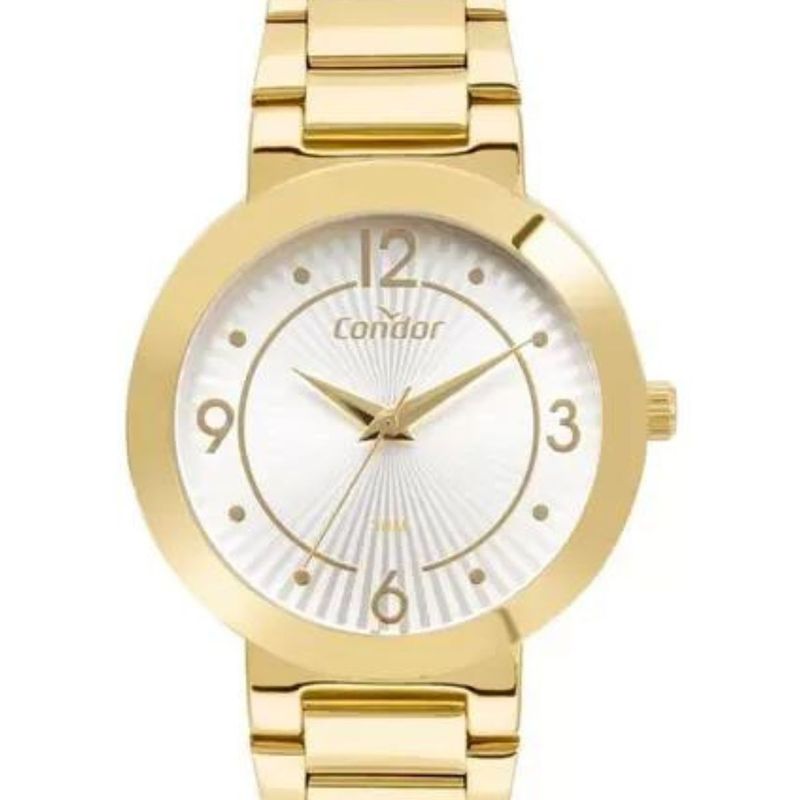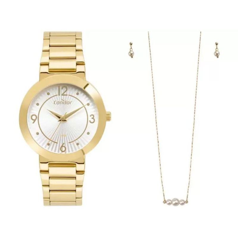 Relógio Feminino Analógico Condor COPC21AEAO/K4B - Dourado com Acessório Escolher um acessório pode ser até mais difícil do que escolher uma roupa para sair. Muitas vezes estamos prontos e falta algo. Uma pulseira, uma jaqueta ou um relógio bacana. Um acessório bem escolhido pode mudar todo o seu visual. A moda feminina segue tendências, e escolher o que melhor se encaixa em nosso estilo não é tarefa simples. Sair do básico, inovar para um encontro ou mostrar estilo em uma reunião de trabalho. Sabendo qual é o seu estilo, a Condor tem vários modelos que vão te ajudar na hora de se vestir. O relógio feminino COPC21AEAO/K4B indicado para o dia a dia, é analógico com pulseira na cor dourado. E tem mais, ele acompanha um lindo acessório! Marca: Condor Gênero: feminino Modelo detalhado: COPC21AEAO/K4B Tipo de mostrador: analogico Material da caixa: aço Cor da caixa: dourado Material da pulseira: aço Cor da pulseira: dourado Tipo de fecho: fivela de liberação Resistência à água: 30 metros Peso: 85 gramasComprimento da Pulseira: 17 cm Tampa Posterior: Pressão Tamanho da Caixa: 38 mm