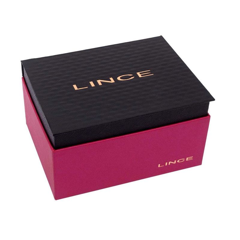 Marca: Lince Gênero: Feminino Modelo detalhado: LRGH165L30 K00TS2KX Tipo de mostrador: analogico Material da caixa e pulseira : aço Cor da caixa e pulseira : dourado Vidro: mineral Diametro da caixa: 38 mm Resistência à água: 50 metros Função: - Acompanha Colar e Brincos (imagem ilustrativa da semi joia, podendo variar) Este produto acompanha: Manual em Português Nota Fiscal Embalagem original Certificado de Garantia de 12 meses do Fabricante