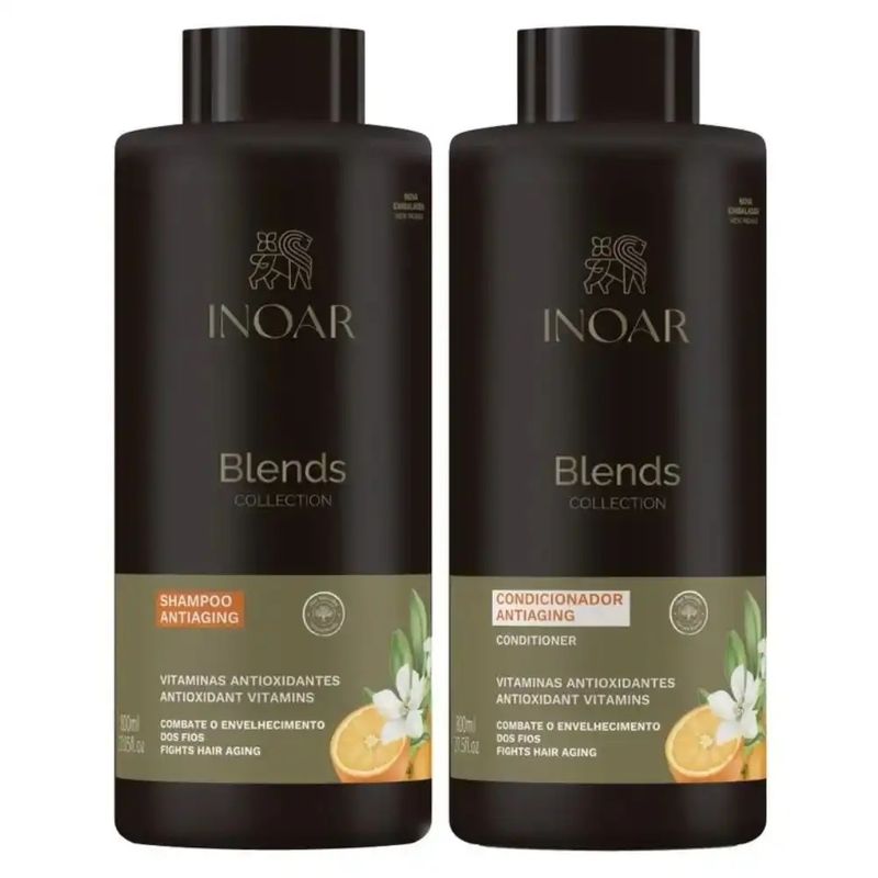 Kit Inoar Blends Shampoo+ Condicionador 800mlA linha Inoar Blends foi desenvolvida a partir de um blend de óleos botânicos e veganos especialmente para cabelos ressecados. Uma combinação de óleos de coco (vitamina E e ácidos graxos), abacate (vitaminas A, B, D e aminoácidos) e argan (antioxidante).