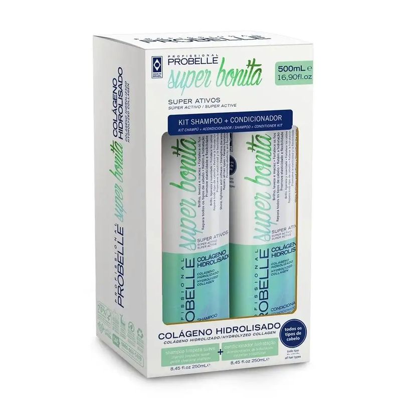 O Kit Shampoo + Condicionador Probelle Colágeno Hidrolisado 500ml é uma ótima opção para quem busca cabelos saudáveis e hidratados. O colágeno hidrolisado ajuda a fortalecer os fios, proporcionando mais elasticidade e brilho.Além disso, esse kit pode ajudar a reduzir a quebra dos cabelos e a melhorar a textura. É ideal para todos os tipos de cabelo, especialmente os que estão danificados ou ressecados.