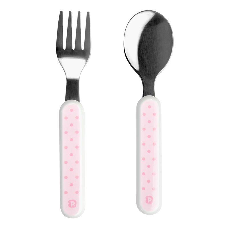 Kit talher bolinhas rosa Pimpolho ideal para incentivar a criança à ter autonomia na hora das refeições, possui garfo e colher produzidos com lâminas de aço inox e cabos de polipropileno, com tamanho ideal para as mãozinhas do bebê. Com estampa fofinha que atrai e encanta a criança na hora da refeição. A lâminas em aço inox possuem bordas arredondadas que não machucam a boca da criança. Os cabos são produzidos em polipropileno que possuem maior resistência e durabilidade. Especificações: – Uso recomendado para crianças a partir de 6 meses, podendo ser utilizado também por crianças maiores pois tem um tamanho ótimo. – Produto Atóxico. – Produto Livre de BPA. – Contém: 1 Garfo e 1 Colher. – Composição: Cabo: Poliestireno de alto impacto. Talher: 100% Aço Inox. Marca: Pimpolho
