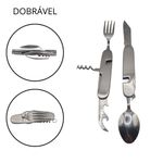 Talheres Multifuncionais Inox 6 em 1 – Praticidade para Camping, Viagem e Trilha Tenha tudo o que você precisa em uma única peça! Os talheres multifuncionais em aço inoxidável são ideais para quem busca praticidade, resistência e versatilidade no dia a dia ou em aventuras ao ar livre. Com design compacto e portátil, ele combina em um só acessório garfo, colher, faca, abridor de garrafas, saca-rolhas e abridor de latas. Um item indispensável para camping, pescaria, piqueniques, viagens, trilhas e até para ter no carro ou mochila. Características do Produto 5 funções em 1 só peça Garfo Colher Faca Abridor de garrafas Saca-rolhas Vantagens: Mais praticidade em viagens e acampamentos Substitui diversos utensílios em um só produto Ideal para amantes de aventura e camping Perfeito para presente criativo e útil Material: Aço Inoxidável Dimensões aproximadas: Comprimento fechado: 11 cm Comprimento aberto: 23 cm Peso: 133g Item incluso: 1 Conjunto de Talheres Dobrável