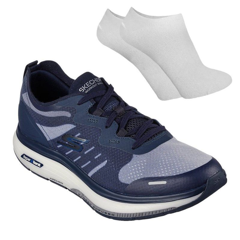 Descrição:O tênis Skechers Go Walk Workout Walker Ultra Motion Masculino é a pedida certa para suas corridas e treinos. Seu cabedal é fabricado em mesh ultra leve, garantindo altíssima respirabilidade, além de proporcionar maior durabilidade. A entressola Hyper Burst proporciona um amortecimento altamente responsivo, além de contar com a tecnologia Carbon Infused, concedendo maior estabilidade a cada passada. O solado emborrachado é produzido em conjunto com a empresa Good Year, proporcionando aderência e tração para todos os tipos de superfícies. Seu fechamento é realizado por cadarços, tornando possível uma regulagem perfeita. As palmilhas Arch Fit Air Cooled concedem um encaixe perfeito aos pés, além de serem removíveis e respiráveis, facilitando sua higienização. Chegue mais longe em seus treinos e corridas com o Tênis Skechers Go Walk Workout Walker Ultra Motion. Para completar o Kit, temos o par de meias. O modelo é sapatilha, um estilo atemporal e que combina com diversos looks. Algodão, poliamida e elastano são os materiais presentes no produto. A cor branca é versátil e se harmoniza com outros calçados também. O tamanho da meia acompanha o tênis.Referência: 216245-NVY. TECNOLOGIAS Hyperburst: Entressola leve de alta responsividade, proporcionando maior amortecimento e conforto prolongado. Carbon Infused: Placa de carbono localizada na região do solado, garantindo assim maior estabilidade em cada passada. Good Year: O solado emborrachado é projetado e fabricado em parceria com a empresa Good Year, concedendo toda aderência e tração necessárias para suas corridas e treinos, além de aprimorar sua durabilidade.