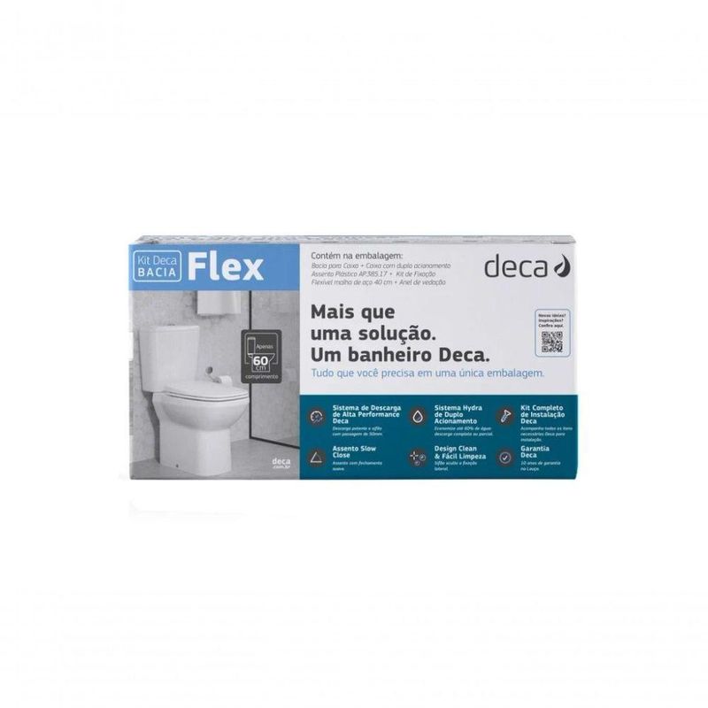 Kit Vaso Sanitário Com Caixa Acoplada Flex BrancoO Kit vaso sanitário e Caixa Acoplada com Acessórios Flex Branco da Deca é completo para instalação de vaso sanitários no banheiro com qualidade e estilo que dão elegância ao banheiro. O conjunto acompanha vaso sanitário para caixa acoplada, caixa acoplada com acionamento duo, assento sanitário soft close e easy clean, parafuso para fixação, anel de vedação e flexível de 40cm.Design, qualidade e inovação sempre foram conceitos que diferenciaram a Deca ao longo de sua história. São eles que fazem da empresa a maior fabricante de louças e metais sanitários do Hemisfério Sul e líder no mercado brasileiro, além de exportadora para os quatro continentes. Investindo constantemente em pesquisa e desenvolvimento tecnológico, a Deca se preocupa em oferecer produtos e soluções para clientes e consumidores, sempre buscando a excelência em serviços e uma gestão sustentável. Informações Peso (kg): 44,339 Cor: Branco Produto: Kit Vaso Sanitário com Caixa Acoplada Flex Branco Dimensões Aproximadas do Produto com Embalagem (cm) - AxLxP: 40 x 36 x 60 cm Capacidade: 6 Litros Material: Argila, Caulim, Corantes Inorgânicos, Feldspato e Vidrados Informações Adicionais: Informações e dados são de responsabilidade do fornecedor. Conteúdo da Embalagem em Unidades: 1 Vaso Sanitário, 1 Caixa Acoplada, 1 Assento e Kit de Instalação Modelo: Flex Referência do Produto no Fornecedor: KP.380.17 Marca: Deca Garantia (Mês): 120 Formato: Quadrado Código de Barras: 7894202004606