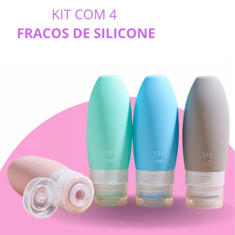 Kit Viagem 4 Frascos Silicone – Praticidade e Conforto para Suas Viagens! Viaje com muito mais praticidade e organização com o Kit Viagem 4 Frascos Silicone! Ideal para armazenar seus produtos de higiene pessoal como creme, shampoo e condicionador, o kit oferece frascos de 90ml, permitindo que você leve apenas o essencial para viagens, passeios ou idas à academia. Compactos, resistentes e fáceis de usar, esses frascos são perfeitos para quem não abre mão de cuidados pessoais até mesmo fora de casa! Principais Benefícios: 4 Frascos Práticos e Versáteis: Para shampoo, condicionador, creme e outros líquidos essenciais, todos com capacidade de 90ml. Material em Silicone: Flexível, resistente e fácil de espremer, evitando desperdício e facilitando o transporte. Design Compacto e Funcional: Perfeito para levar em malas de mão, mochilas ou bolsas sem ocupar muito espaço. Tampa Anti-vazamento: Protege seus produtos contra derramamentos indesejados. Aprovado para Viagens de Avião: Frascos com capacidade ideal para não ultrapassar os limites para líquidos em voos. Seja para uma viagem de negócios ou férias, o Kit Viagem 4 Frascos Silicone oferece a conveniência que você precisa para manter seus produtos sempre ao alcance, sem abrir mão da praticidade. Adquira o seu agora e organize sua viagem com estilo e eficiência! Material: - Silicone - Plástico Contém: - 4 Frascos de 90ml