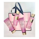 Kit Victoria's Secret Pure Creme Seduction 236ml + Body Splash 250 ml Descubra a sedução e o cuidado que o Kit Victoria's Secret Pure Creme Seduction oferece para sua pele. Composto por uma loção cremosa de 236ml e um body splash de 250ml, este kit é a combinação perfeita para quem busca hidratação intensa e uma fragrância irresistível. Hidratação Luxuosa A loção Pure Creme Seduction proporciona uma hidratação profunda, deixando a pele macia e suave ao toque. Formulada com ingredientes de alta qualidade, ela nutre a pele, garantindo uma textura sedosa e radiante ao longo do dia. Fragrância Envolvente O body splash complementa a experiência sensorial, com notas florais e frutais que envolvem o corpo em um aroma sedutor. Perfeito para qualquer ocasião, seu perfume leve deixa um rastro marcante e encantador, fazendo você se sentir confiante e atraente. Praticidade e Conforto A textura cremosa da loção é de rápida absorção, permitindo uma aplicação fácil e sem deixar a pele pegajosa. Use-a diariamente após o banho para uma sensação de frescor duradoura. O body splash pode ser reaplicado ao longo do dia, mantendo a fragrância sempre presente. Transforme sua rotina de cuidados com a pele e experimente o Kit Victoria's Secret Pure Creme Seduction 236ml + Body Splash 250 ml. Garanta já o seu e deixe sua pele irresistível!