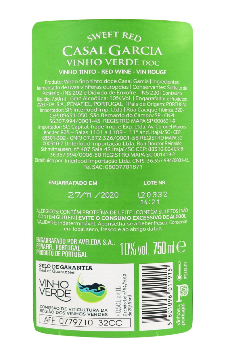 Conteúdo da embalagem: 2x Vinho Casal Garcia Tinto Sweet Red 750ml Casal Garcia Sweet Red, um vinho tinto jovem leve, mais fresco e muito frutado que explora o lado inusitado de um vinho servido e consumido fresco. Cor: Vermelho rubi, brilhante e levemente efervescente. Aroma: Notas de framboesa e morangos. Uvas: Vinhão, Touriga Nacional, Azal tinto e Borraçal Harmonização: Acompanha petiscos, pratos de carne, churrascos e comida italiana. Temperatura de serviço: 8º e 10º C. Produtor: Aveleda País: Portugal Teor alcoólico: 10% Volume: 750ml Se for dirigir não beba. Conteúdo para maiores de 18 anos. Todas as informações divulgadas são de responsabilidade do fabricante/fornecedor. Imagens meramente ilustrativas.