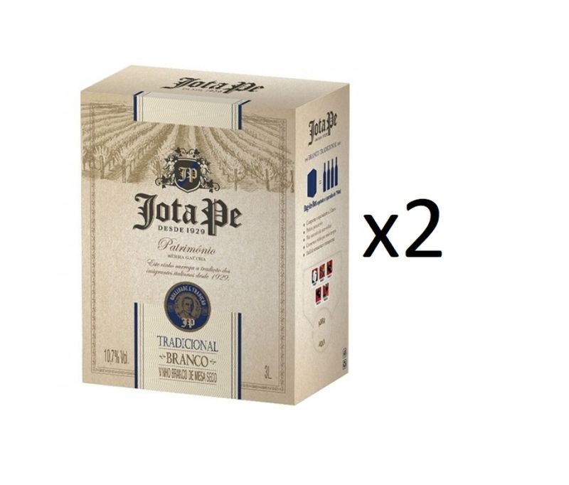 Conteúdo da embalagem: 2x Vinho Jota Pe Branco Seco Casa Perini Bag in Box 3 litros O conteúdo desta embalagem equivale a quatro garrafas de 750ml. Bag in Box é uma embalagem prática para transporte, armazenamento e fácil para servir o vinho na taça, garantindo as propriedades da bebida por mais tempo. Além de oferecer um ótimo custo x benefício, não necessita de saca-rolhas. Costuma-se dizer que a qualidade da última taça é a mesma da primeira. Vinho idealizado para ser consumido ainda jovem, sem compromisso com o envelhecimento. De cor amarelo palha e aspecto límpido e cristalino, além de toques leve e fresco. Harmonização: massas com molhos brancos, carnes brancas, mandioca, risotos, omeletes, pizzas, petiscos, peixes, sobremesas. Cor: amarelo palha e aspecto límpido e cristalino. Aroma: frutado. Sabor: Fresco e leve. Temperatura de serviço: 16° a 18°C. Uva: Diversas Origem: Serra Gaúcha/Brasil Produto vegano. Tipo: Vinho de mesa branco seco. Teor alcoólico: 10,7% Volume: 3000ml Se for dirigir não beba. Conteúdo para maiores de 18 anos. Todas as informações divulgadas são de responsabilidade do fabricante/fornecedor. Imagens meramente ilustrativas.