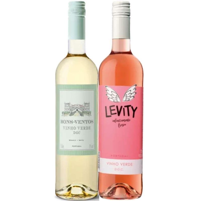 Kit Vinhos Verdes Portugal 1Bons Ventos Branco:: Vinho Verde - PortugalProdutor: Bons VentosTipo: Branco Meio SecoUva: Loureiro, Arinto, Trajadura e AvessoAmadurecimento: Tanques de Aço InoxÁlcool: 8,5%Cor amarelo palha com reflexos esverdeados. No nariz predominam as notas de frutas cítricas, nuances de maçã verdee pêra. Na boca prevalece o frescor e a boa acidez em um vinho super refrescante e versátil. Ideal com frutos do mar, peixes e comida japonesa.Levity Rose:: Vinho Verde - PortugalProdutor: Casa de Vila NovaTipo: Rose Meio SecoUva: Espadeiro, Vinhão e AmaralAmadurecimento: Tanques de Aço InoxÁlcool: 9,5%Um vinho verde leve de linda cor rosada, refrescante, de paladar frutado e suave. Perfeito para happy hour, conversa com amigos ou acompanhando peixes, saladas, frutos do mar ou aves.Bons Ventos Branco:: Vinho Verde - PortugalProdutor: Bons VentosTipo: Branco Meio SecoUva: Loureiro, Arinto, Trajadura e AvessoAmadurecimento: Tanques de Aço InoxÁlcool: 8,5%Cor amarelo palha com reflexos esverdeados. No nariz predominam as notas de frutas cítricas, nuances de maçã verdee pêra. Na boca prevalece o frescor e a boa acidez em um vinho super refrescante e versátil. Ideal com frutos do mar, peixes e comida japonesa.Levity Rose:: Vinho Verde - PortugalProdutor: Casa de Vila NovaTipo: Rose Meio SecoUva: Espadeiro, Vinhão e AmaralAmadurecimento: Tanques de Aço InoxÁlcool: 9,5%Um vinho verde leve de linda cor rosada, refrescante, de paladar frutado e suave. Perfeito para happy hour, conversa com amigos ou acompanhando peixes, saladas, frutos do mar ou aves.