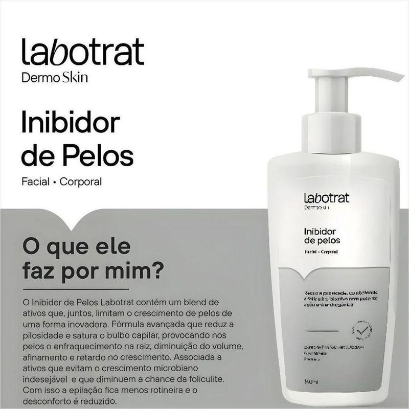 Labotrat Inibidor De Pelos Dermo Skin 140mlLabotrat Inibidor de Pelos Dermo Skin 140ml - A Solução Eficaz para um Corpo Livre de Pelos IndesejadosDescubra o poder do Labotrat Inibidor de Pelos Dermo Skin, um produto inovador que promete transformar sua rotina de beleza. Com sua exclusiva, ele atua diretamente na raiz do , inibindo o crescimento dos pelos e proporcionando uma pele mais lisa e livre de irritações. Com 140ml de puro cuidado, você terá em mãos uma solução prática e eficiente.Ingredientes e ComposiçãoA do Labotrat é cuidadosamente elaborada com ingredientes ativos que garantem resultados incríveis. Entre os principais componentes, destacam-se:Extrato de Aloe Vera: Conhecido por suas propriedades hidratantes e calmantes, o Aloe Vera ajuda a suavizar a pele e reduzir a irritação.Ácido Lático: Um poderoso inibidor do crescimento dos pelos, que age diretamente no folículo capilar, tornando-os mais finos e raros com o uso contínuo.Óleo de Jojoba: Rico em nutrientes, proporciona uma nutrição profunda e ajuda a manter a pele macia e saudável.Modo de UsarPara obter os melhores resultados, aplique o Labotrat Inibidor de Pelos Dermo Skin sobre a área desejada, após a depilação. Com a pele limpa e seca, massageie suavemente até que o produto seja totalmente absorvido. Utilize duas vezes por dia para um efeito prolongado e eficaz.BenefíciosO uso regular do Labotrat proporciona uma série de benefícios:- Redução significativa do crescimento dos pelos.- Pele mais suave e livre de irritações.- de rápida absorção e fácil aplicação.- Resultados visíveis em poucas semanas de uso.IndicaçãoO Labotrat Inibidor de Pelos Dermo Skin é indicado para homens e mulheres que buscam uma alternativa eficaz para depilação e cuidados com a pele. Ideal para quem sofre com pelos encravados, irritações e deseja praticidade em sua rotina de beleza.Principais DúvidasSe você tem dúvidas sobre a eficácia ou a do produto, fique tranquilo! O Labotrat é dermatologicamente testado e não causa alergias. Além disso, a é livre de parabenos e sulfatos, garantindo um cuidado suave e para todos os tipos de pele..Sobre NósA Negabella é a sua de confiança, comprometida em oferecer produtos de alta qualidade que atendem às suas necessidades de beleza e cuidado pessoal. Ao escolher o Labotrat, você não apenas investe na sua beleza, mas também na sua autoestima. E se a sua compra for um presente, basta nos informar após a compra que enviaremos em uma embalagem especial. Experimente e surpreenda-se com os resultados!Labotrat Inibidor de Pelos Dermo Skin 140ml - A Solução Eficaz para um Corpo Livre de Pelos IndesejadosDescubra o poder do Labotrat Inibidor de Pelos Dermo Skin, um produto inovador que promete transformar sua rotina de beleza. Com sua exclusiva, ele atua diretamente na raiz do , inibindo o crescimento dos pelos e proporcionando uma pele mais lisa e livre de irritações. Com 140ml de puro cuidado, você terá em mãos uma solução prática e eficiente.Ingredientes e ComposiçãoA do Labotrat é cuidadosamente elaborada com ingredientes ativos que garantem resultados incríveis. Entre os principais componentes, destacam-se:Extrato de Aloe Vera: Conhecido por suas propriedades hidratantes e calmantes, o Aloe Vera ajuda a suavizar a pele e reduzir a irritação.Ácido Lático: Um poderoso inibidor do crescimento dos pelos, que age diretamente no folículo capilar, tornando-os mais finos e raros com o uso contínuo.Óleo de Jojoba: Rico em nutrientes, proporciona uma nutrição profunda e ajuda a manter a pele macia e saudável.Modo de UsarPara obter os melhores resultados, aplique o Labotrat Inibidor de Pelos Dermo Skin sobre a área desejada, após a depilação. Com a pele limpa e seca, massageie suavemente até que o produto seja totalmente absorvido. Utilize duas vezes por dia para um efeito prolongado e eficaz.BenefíciosO uso regular do Labotrat proporciona uma série de benefícios:- Redução significativa do crescimento dos pelos.- Pele mais suave e livre de irritações.- de rápida absorção e fácil aplicação.- Resultados visíveis em poucas semanas de uso.IndicaçãoO Labotrat Inibidor de Pelos Dermo Skin é indicado para homens e mulheres que buscam uma alternativa eficaz para depilação e cuidados com a pele. Ideal para quem sofre com pelos encravados, irritações e deseja praticidade em sua rotina de beleza.Principais DúvidasSe você tem dúvidas sobre a eficácia ou a do produto, fique tranquilo! O Labotrat é dermatologicamente testado e não causa alergias. Além disso, a é livre de parabenos e sulfatos, garantindo um cuidado suave e para todos os tipos de pele..Sobre NósA Negabella é a sua de confiança, comprometida em oferecer produtos de alta qualidade que atendem às suas necessidades de beleza e cuidado pessoal. Ao escolher o Labotrat, você não apenas investe na sua beleza, mas também na sua autoestima. E se a sua compra for um presente, basta nos informar após a compra que enviaremos em uma embalagem especial. Experimente e surpreenda-se com os resultados!