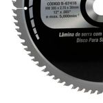 Lamina De Serra Tct 305mm X 30mm X 80t#html-body [data-pb-style=FPUEQ5R]{justify-content:flex-start;display:flex;flex-direction:column;background-position:left top;background-size:cover;background-repeat:no-repeat;background-attachment:scroll}Disco Serra Makita 80 Dentes 305 mm x 30 mm B-67418Se você busca máxima eficiência, qualidade de acabamento e economia de energia em seus cortes de madeira, o Disco de Serra Makita 80 Dentes 305 mm x 30 mm B-67418 foi feito especialmente para você. Projetado com a expertise Makita ? marca reconhecida mundialmente pela inovação em ferramentas de alto desempenho ? este disco oferece um resultado incomparável em serras de esquadria, principalmente em equipamentos a bateria.O grande diferencial do Disco Makita B-67418 está em sua espessura reduzida, desenvolvida para proporcionar cortes rápidos, precisos e com menor esforço do motor. Essa característica não só aumenta a velocidade de trabalho, como também garante um acabamento superior, com bordas lisas e profissionais, reduzindo a necessidade de retrabalhos.Ideal para aplicações em madeira, o Disco Makita 80 Dentes possui dentes com ângulo de 10° no formato ATAFR ? tecnologia que melhora ainda mais o desempenho do corte, garantindo suavidade e menor desgaste do material. Seja para construção civil, marcenaria ou instalações diversas, este disco assegura versatilidade e qualidade em todos os projetos.Especificações- Diam: 260- Furo: 30- Anel: 25.4/15.88- Espessura do dente: 2,15- Espessura do disco: 1,65- Número de dentes: 80- Ângulo do dente: 10°- Formato do dente: ATAFR- Aplicações: Madeira- Segmentos: Construção Civil / MarcenariaItens inclusos- Disco Serra Makita B-67418Garantia- 03 meses com o Fabricante NA
