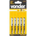 Conteúdo Embalagem:1 Cartela com 5 lâminasDestaques e diferenciais:Proporciona cortes rápidos e precisosAplicações e dicas de uso:Indicada para madeiras e derivadosCaracterísticas Técnicas:Comprimento total da serra tico-tico: 100,0 mm Comprimento de corte da serra tico-tico: 75,0 mm Largura da serra tico-tico: 7,5 mm Número de dentes por polegada: 6 dentes Material da serra tico-tico: Aço carbono Tipo de encaixe da serra tico-tico: Encaixe UniversalGarantia:Garantia legal: 90 dias