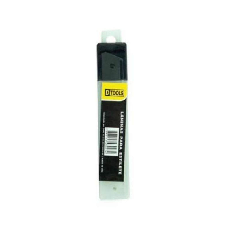 Lâmina Estilete Grande 18mm com 10 Lâminas - DTOOLS - LÃMINA PARA ESTILETE GRANDE COM 10 LÃMINAS 18MM - DTOOLSCom a Lâmina para Estilete Grande 18mm - DTOOLS, você terá em mãos um produto de alta qualidade e durabilidade, perfeito para cortes precisos em diferentes materiais. Seja para uso profissional ou doméstico, essa lâmina é essencial para quem busca eficiência e praticidade em suas atividades do dia a dia.- Lâmina de estilete grande 18mm- Acompanha 10 lâminas- Ideal para cortes precisos em diversos materiais- Produto de alta qualidade e durabilidade- Indicado para uso profissional e domésticoInformações Técnicas:- Marca: DTOOLS- Modelo: Lâmina para Estilete Grande 18mm- Quantidade: 10 lâminas- Tamanho: 18mm- Material: Aço carbono- Acabamento: Super afiado- Indicado para: Uso profissional e domésticoNão perca a oportunidade de adquirir a Lâmina para Estilete Grande 18mm - DTOOLS Universo do Lar e tenha em mãos um produto de qualidade garantida para facilitar o seu dia a dia! -------- Descrição Original enviada pelo Fornecedor: LÃMINA PARA ESTILETE GRANDE 18MM - DTOOLSCom 10 lâminas Características Gerais do Produto: Garantia: • 3 meses