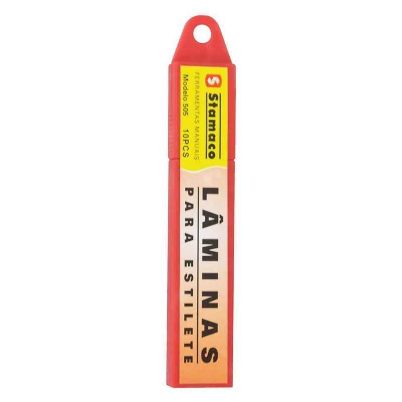 Lâminas Para Estilete Modelo 505 Com 10 Peças - 8040 - Stamaco Lamina P/estilete Ref.505 C/10 Stamaco 804.0Lâminas Para Estilete Modelo 505 Com 10 peças ? 8040 ? STAMACORefil de lâminas 18mm da marca Stamaco. Refil com 10 peças de lâminas de 18mm modelo 505.A linha de Trenas e Estiletes Stamaco foi desenvolvida para facilitar o seu trabalho e contam com diversasopções para melhor atender as suas necessidades.meli_shipping_mode - me1