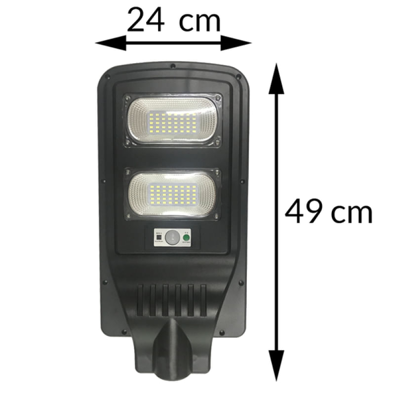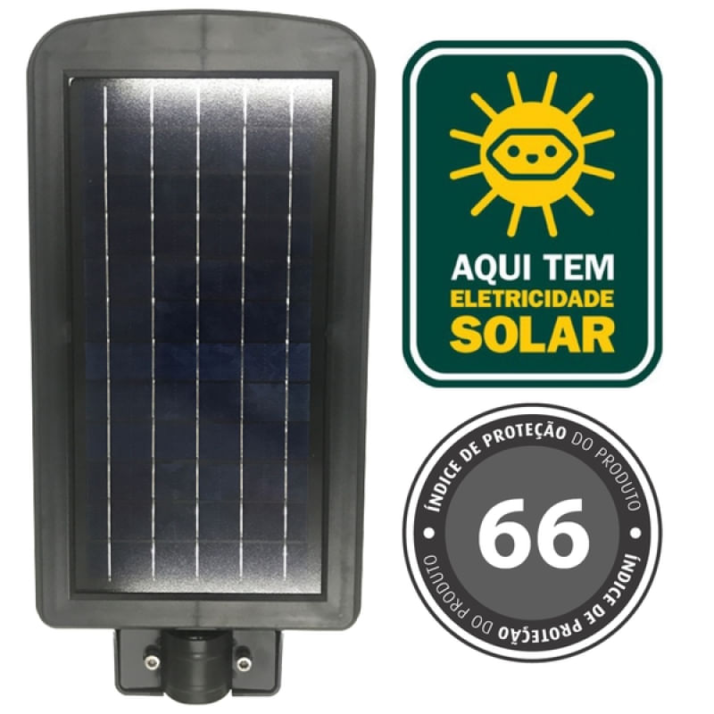 Lâmpada De Led Solar Automática Externa Inteligente 40 W - Pode ser programada para acender conforme a luminosidade ou ao detectar movimentos. Pode ser colocada em tanto em uma garagem, e programada para acender assim que detectar um veículo chegando, quanto em um jardim, para acender-se assim que o sol se põe, e apagar-se assim que ele nasce. Lâmpada solar externa 40W (Com sensor de presença) 80 Diodos de LED, cada um com 0,5W 5200 Lúmens Temperatura da luz: 6500K (Luz ultra branca) Painel solar de 6V e 10W, Policristalino Bateria de Íon-Lítio de 3,2V e 15.000 mAh Tempo de carregamento: 6-8 Horas Tempo de funcionamento: 12-36 Horas Material: Plástico ABS de alta densidade e dureza Altura de instalação: 3-5 Metros Área de iluminação: 5,65 metros de diâmetro, ou 100 metros quadrados. Grau de proteção: IP65 (Totalmente protegido contra pó e protegido contra jatos d'água em qualquer direção) Vida útil: 50.000 Horas Conteúdo da embalagem: 01 Refletor de LED 40W com painel solar embutido 01 Controle remoto 01 Manual de instruções Características Gerais do Produto: Garantia: • Garantia do site - 1 Mês