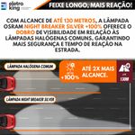 Lâmpada Halógena Osram Night Breaker Silver +100% Luz H11 55W 12V Com a Night Breaker Silver, a OSRAM oferece uma lâmpada automotiva de desempenho, uma vez que gera até 100% mais brilho em comparação com o padrão legal mínimo e um feixe que é de até 130 metros de comprimento. Isso permite que você veja sinais de trânsito, obstáculos e perigos mais cedo e o motorista tenha mais tempo para reagir. Além disso, essas lâmpadas automotivas têm uma relação preço-desempenho convincente e um design moderno com uma atraente tampa prateada. A escolha perfeita para motoristas que exigem muito desempenho e vida útil. Especificações Técnicas: • Marca: Osram • Modelo: H11 • Linha: Night Breaker Silver +100% Luz • Potência: 55W • Tecnologia: Halógena • Tensão: 12V • Tipo de soquete: PGJ19-2 • Lúmens: 1350 lm • Cor da luz: Branco Quente (aproximadamente 3200K). • Vida útil média: Aproximadamente 400 horas. • Instalação fácil, sem adaptações. • Homologada pelo Inmetro • Aplicação: Farol Alto, Farol Baixo ou Farol de Milha. • Alcance do feixe de luz: Até 130 metros • Benefício: Até +100% mais luz comparado a lâmpadas standard. Conteúdo da Embalagem: • 01 Lâmpada Halógena Osram Night Breaker Silver +100% Luz H11 Importante: • Garantia de 90 Dias. • Valor Unitário.