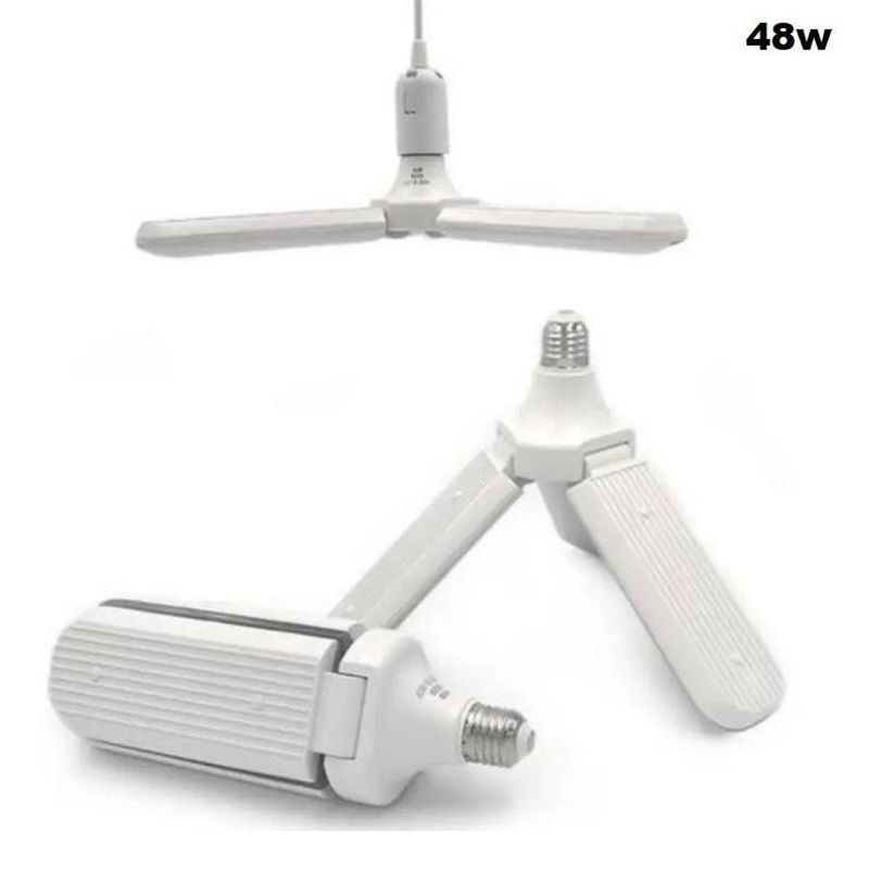 Lâmpada forte, super brilhante, decorativa, ideal para usar direto no soquete ou extensor, deixando sua casa, escritório, loja ou salão bonito como um lustre e muito mais prática e econômica.QUALIDADES DO PRODUTO:- Possui 3 abas de iluminação dobráveis, permitindo ajustar de maneira independente, conforme a sua necessidade, proporcionando o melhor ângulo para sua iluminação.- Com seu design moderno, confere muita elegância e sofisticação ao ambiente.- Lâmpadas de LED oferecem ótima iluminação e economia de até 90% na energia elétrica.- Design moderno, confere muita elegância e sofisticação ao ambiente.CARACTERÍSTICAS:- Potência: 48W (5000 lumens)- Cor da Luz: 6500K (Branco Frio)- Vida longa 40.000 horas.- Soquete: E27 (O MESMO DE LÂMPADA COMUM)- Alimentação: Bivolt 110/220V- Medidas Fechada: 8.8cm largura x 24cm altura- Medidas Aberta: 40cm largura x 8cm alturaCONTEÚDO DA EMBALAGEM:- 01 Lâmpada Pétala 48wCOMO USAR:1- Rosquear a lâmpada em um soquete comum de lâmpadas, padrão e27.2- Acender o interruptor normalmente.