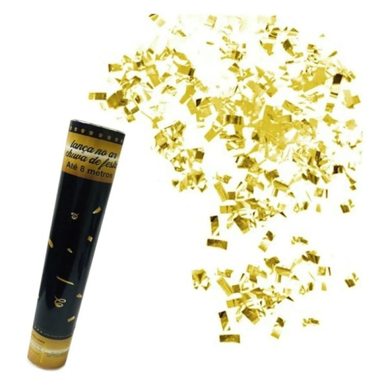 Lança Confete Chuva Dourada 60cm - Modelo: Chuva Dourada Papel Tamanho do tubo: 60cm comprimento x 5cm de diâmetro Lançamento: lança de a 5 metros de altura Mecanismo de acionamento: ar comprimido ( não contém pólvora ) - retire o lacre e gire a base e o corpo para o lado indicativo das setas bem rapidamente. Uso adulto. Não é um brinquedo Características Gerais do Produto: Garantia: • Garantia do site - 1 Mês