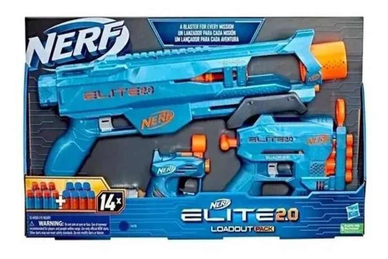 Lançador Dardos Nerf Elite 2.0 Loadout Pack – Kit Com 3 Nerf - Hasbro aventura fica mais ainda divertida com este kit com 3 lançadores Nerf Elite 2.0! O kit vem com os lançadores: Technician DS-2 que lança 2 dardos seguidos por bombeamento, possui trilho tático e encaixe para apoiador (apoio não incluído). Quadfire QS-4 que lança 4 dardos seguidos, possui carregador manual e mira integrada. E o lançador Ace SD-1 que lança 1 dardo, possui mira integrada e porta-dardos para 1 dardo extra. O kit Nerf Elite 2.0 Loadout vem 14 dardos Nerf Elite, quantidade suficiente para carregar os lançadores e dardos extras para recargas rápidas. Idade acima de 8 anos Contem 3 lançador 14 dardos. Tamanho da embalagem 52 x 29 x 6,5 cm Fabricante Hasbro