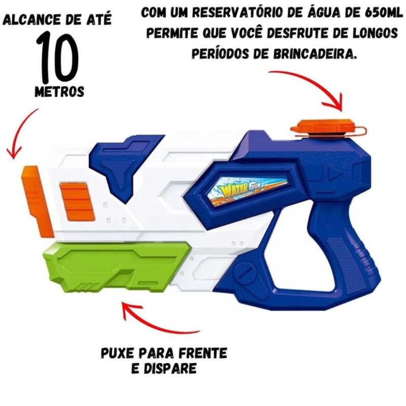 Lançador de Água Splash Water Fênix 650ml Refresque-se com muita diversão! O Lançador de Água Splash Water Fênix 650ml é ideal para garantir momentos de alegria e brincadeiras refrescantes nos dias mais quentes. Com design moderno e fácil de usar, é perfeito para crianças e adultos que adoram uma boa disputa de esguichos d’água. Com um reservatório de 650ml, o lançador oferece longos períodos de diversão sem necessidade de recarregar a todo instante. Seu mecanismo de pressão permite lançar jatos d’água de até 10 metros de alcance, tornando cada brincadeira ainda mais emocionante. Basta puxar para frente e disparar! Benefícios Alcance de até 10 metros para mais emoção nas brincadeiras; Reservatório de grande capacidade (650ml); Fácil de manusear, ideal para todas as idades; Proporciona diversão saudável ao ar livre; Design leve, ergonômico e resistente. Modo de Uso Encha o reservatório com água, feche bem, puxe o cano para frente e dispare. Ideal para brincadeiras em piscinas, praias e quintais. Sempre utilize em locais abertos e seguros. Conservação Esvazie e seque após o uso; Não utilize produtos químicos na água; Evite exposição prolongada ao sol para preservar a cor e o material. Informações Adicionais Marca: Fênix; Capacidade: 650ml; Alcance: até 10 metros; Mecanismo: Pressão manual; Modelo PAG-941.