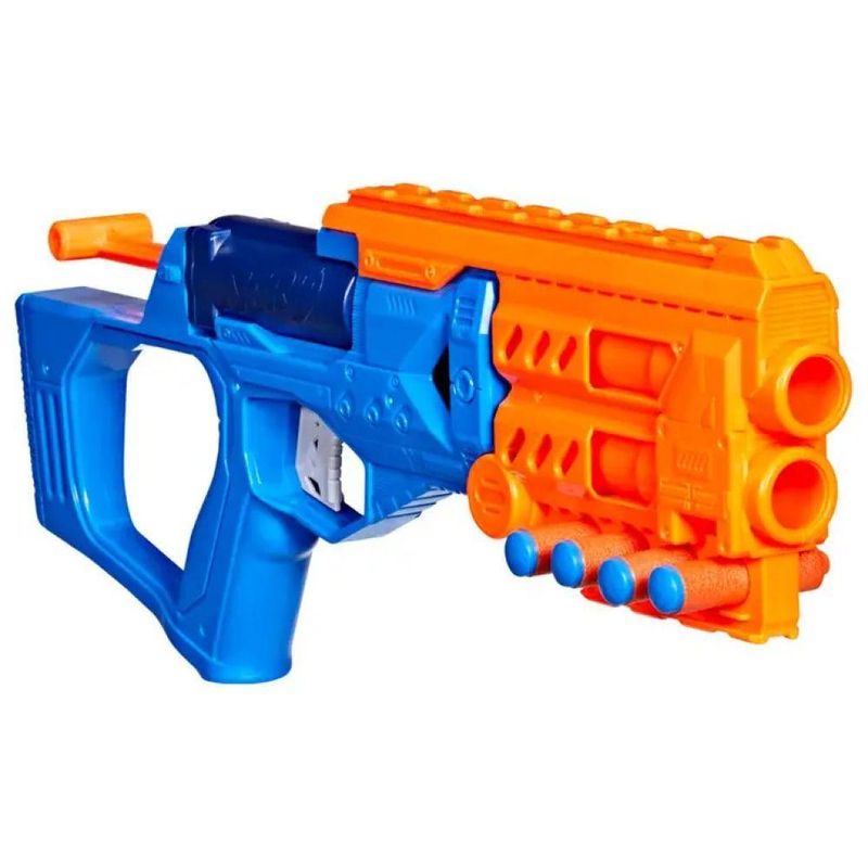 Seja bem-vindo(a) a Loja NIVALMIX, O lançador Nerf N-Series Topbreaker é a escolha perfeita para quem busca aventura e precisão em cada disparo. Com um visual estiloso em azul e laranja, esse blaster apresenta um sistema de recarga inovador: basta abrir a frente, inserir os dardos e fechar para estar pronto para ação. Seu mecanismo dispara um dardo por vez, com capacidade para dois por recarga, garantindo rapidez e fluidez nos jogos de mira. Ao abrir o produto, o usuário encontra quatro dardos Nerf N1 inclusos — aqueles da nova geração que oferecem extrema precisão, velocidade e alcance aprimorado. O design compacto inclui ainda dois trilhos táticos que podem acomodar acessórios personalizados, permitindo ao jogador adaptar o lançador ao seu estilo — seja com mira, lanterna ou outros complementos. Além disso, sua empunhadura ergonômica e a leveza da estrutura tornam-no fácil de manusear, perfeito para mãos jovens e adultos que buscam conforto em cada partida. Ideal para começar brincadeiras dentro ou fora de casa, o Topbreaker combina diversão intensa com a confiabilidade da marca Nerf — sinônimo de segurança e qualidade em jogos de dardos de espuma. Especificações: • Material: Plástico e espuma • Marca: Hasbro • Referência: G0878 • Garantia do Fornecedor: 3 meses contra defeitos de fabricação • Validade: Indeterminada • Indicação: Não recomendável para crianças menores de 3(três) anos e indicado para crianças a partir de 8 (oito) anos. • Certificação Registro Inmetro: 003832/2021 OCP:0003 • Dimensões do produto (aproximadas): 44 x 20 cm Itens Inclusos: • 01 Lançador • 04 Dardos (de espuma)