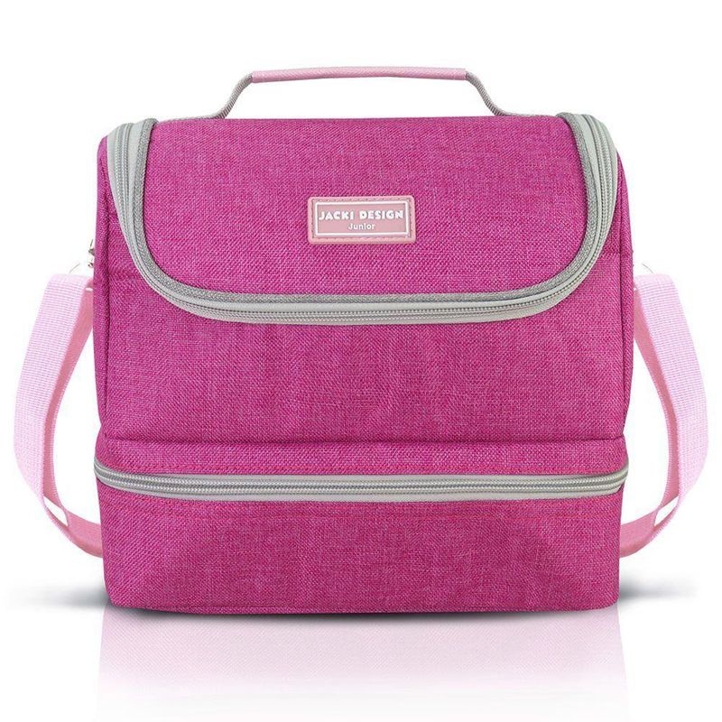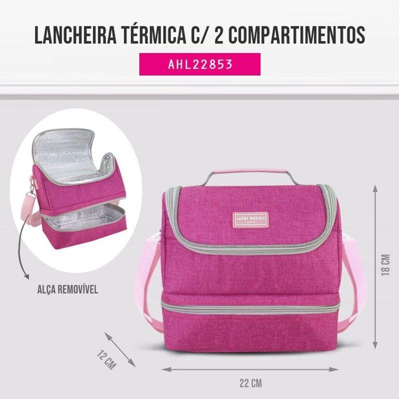 Lancheira Térmica Com 2 Compartimentos Jacki Design - Pink PinkLancheira Térmica c/ 2 Compartimentos Jacki Design - Pink Pink -A Lancheira térmica de 2 compartimentos da coleção Júnior foi criada pensando nos jovens estudantes, perfeito para crianças ou até para os pré-adolescentes. Possui alça de mão, alças ajustáveis, folhas de alumínio na parte interna conservando os alimentos frescos por mais tempo. É ideal para passeios, viagens ou escola. Conheça a linha completa da coleção JÚNIOR e complete o seu kit! CUIDADOS GERAIS: Limpe a bolsa térmica com um pano úmido. Caso necessário, use sabão neutro ou álcool para higienizar o local. Deixe secar na sombra.ATENÇÃO: Para preservar a vida útil do produto, recomendamos não deixar a bolsa de molho, não levar a máquina de lavar e também não utilizar produtos químicos.Medidas: Comprimento: 22cm x Largura: 12cm x Altura: 18cmCaracterísticas Gerais do Produto:Garantia:- Sem Garantia
