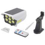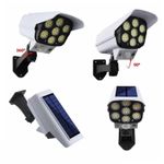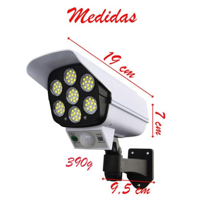 Lanterna Luminária Câmera de Segurança Super LED Com Sensor de Aproximação - Ao usar pela primeira vez, coloque o produto em um local ensolarado para carregar por várias horas. Quando o produto não for usado por um longo tempo, coloque o produto em um local ensolarado para carregar por 1 dia. Para manter a função da bateria. é melhor colocá-lo na luz solar suficiente uma vez por mês. O tempo de carregamento e a eficiência de carregamento dos painéis solares podem ser afetados pelo clima e local de instalação. Considerando a taxa de conversão da geração de energia solar, se o produto for usado com bom tempo, aumentará a eficiência e a elegibilidade do carregamento. Quando houver luz solar e outras luzes, se o interruptor de alimentação estiver desligado, a luz do LED não acenderá dia e noite. O ângulo e a direção da luz da lâmpada solar devem ser ajustados para a melhor posição, e a altura recomendada é de 2-3m. No inverno ou pouco tempo de sol, recomenda-se usar a lâmpada solar no modo 1. ATENÇÃO: Esta lanterna não é uma câmera. Possui 77 LEDs Acompanha controle remoto A Luminária é à prova d'água. Possui três modos de luz. Sensor de Aproximação Características Gerais do Produto: Garantia: • Garantia do site - 1 Mês