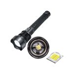 Lanterna Militar Led P90 C/ Indicador Ultra Potente CampingUma lanterna portátil, resistente e potente é essencial em emergências. Além disto, pode ser usada em seu trabalho, pesca, trilhas, montanhismo, camping, escalada, sobrevivência, patrulha noturna, etc.Autonomia de Duração da Bateria é de 4 Horas. Após acionada em modo Total (full) e passando-se 5 minutos de uso contínuo, ela entra automaticamente em modo econômico (50%) para economizar as baterias. Desligando e ligando novamente acenderá em modo Total (full).Informações Técnicas:Fonte de luz: Utiliza super -LED Cree XH-P90 Resistente a água (Chuva) - Importante: não pode ser submersa Fácil Material: Alta resistência em liga de magnésio, usinagem de pressão, dura e resistente e não se deforma 3 Modos de acionamento 50%, 100% e SOS-Strobo Foco Possui Zoom Rápido Telescópico / Deslizante 180000w de potência 1500 Lumes de potência real Vida útil da lâmpada de até horas de uso Funcionamento: Econômica Máxima 100% / 50% / 25% da capacidade. Strobo: (Utilizado em situações de emergência para sinalizar sua localização) Forma de Alimentação: Por Cabo Micro USB ( incluso ) Alimentação 2 Bateria Lítio: Recarregáveis 26650 longa vida útil Modo Indicador De Carga: 4 LEDs na cor azul Fonte de luz: Utiliza super -LED Cree XH-P90 Tamanho Com Zoom: 27cm x 6cm x Tamanho normal: x 6cm x Cor: pretaOrientações de Uso:A primeira carga da bateria Lítio devera ser carregada totalmente antes do primeiro uso. As baterias Lítio possui um longo período de armazenamento de energia, caso seja mantida sempre carregada completamente após uso. A bateria de Lítio não pode permanecer sem carga, a falta dela afetara a vida útil da bateria e não conseguira mais carrega-la. Precaução: Bateria que não tenha mais uso, descarte em apropriado. Não jogue no fogo, no lixo, não amasse, não exponha a grande temperatura ou viole a proteção da mesma, sob risco de explosão ou contaminação por vazamento. Não direcionar o feixe de luz diretamente para os olhos, pode causar lesões oculares, não desmonte a lanterna ou a lâmpada, pois pode ocasionar danos na lanterna, evitar exposição prolongada ao sol ou altas temperaturas.Itens Inclusos:1 Lanterna 2 Baterias 26650 de lítio 1 Cabo USBDúvidas Frequentes:Qual e a distância do alcance do foco dela? 500 Metros Quanto tempo leva para carregar a bateria? Recomendamos que deixe a mesma carregando entre 6 a 8 horas Essa lanterna utiliza duas baterias ou apenas uma? Utiliza duas baterias.