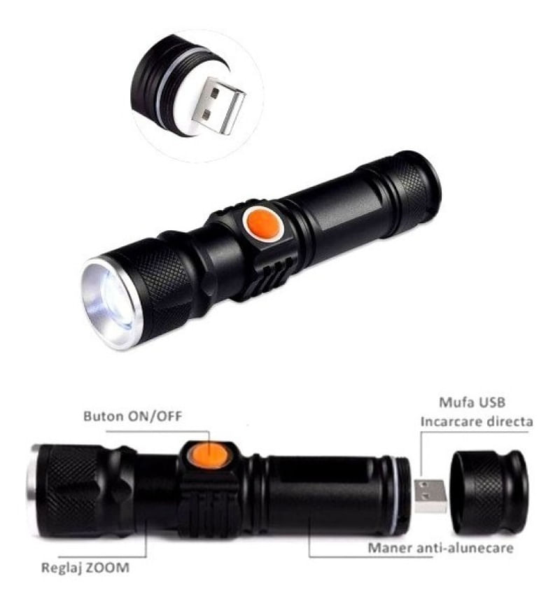 LED T6 com vida útil estimada de até 100.000 horas e alcance de iluminação de 200 metros.Três modos de operação: luz alta (100%), luz baixa (50%) e modo strobo (sinalização S.O.S).Corpo em liga de alumínio, com botão lateral e manca anti-alunecare (antiderrapante).Foco com zoom deslizante (1x a 2000x) para ajuste da intensidade e área iluminada.Bateria interna de lítio recarregável via porta USB na extremidade da lanterna.Compatível com qualquer fonte USB: computador, tomada, power bank, som automotivo.Medidas: 11 cm de comprimento x 2,2 cm de diâmetro.Esta lanterna tática é projetada para uso em ambientes externos e situações que exigem iluminação potente e confiável. Equipada com LED T6, zoom ajustável e recarga USB, oferece versatilidade para atividades como caça, camping, pesca, trilhas, ciclismo e uso profissional por bombeiros e vigilantes. Sua construção em liga de alumínio garante resistência ao uso diário.Construção e Materiais:Materiais de alta qualidade e durabilidade, garantindo resistência ao uso diário e longa vida útil.Estrutura reforçada em liga de alumínio, resistente a impactos e quedas.Acabamentos com proteção contra manchas e desgaste típico de uso externo.Materiais leves que facilitam o manuseio durante caminhadas ou operações prolongadas.Design e Estética:Design compacto e funcional, adaptável a bolsos, cintos e mochilas.Acabamento texturizado no corpo para melhor aderência e controle.Botão lateral de ativação com indicador visual laranja.Formato cilíndrico ergonômico, com superfícies antiderrapantes.Integração harmoniosa com equipamentos de campo e vestuário tático.Instalação e Versatilidade:Produto pronto para uso após recarga inicial.Sistema de recarga via USB integrado na extremidade, sem necessidade de cabos adicionais.Versatilidade para múltiplas aplicações: esportes ao ar livre, segurança, emergência e uso diário.Compatível com qualquer fonte USB padrão (computadores, tomadas, power banks).Cuidados e Manutenção:Limpeza fácil com pano seco ou úmido.Resistência a poeira e umidade leve (não submersível).Recomenda-se evitar exposição prolongada à água ou ambientes altamente corrosivos.Garantia e suporte técnico conforme política do vendedor.Embalagem e Transporte:Embalagem reforçada com materiais de alta resistência, garantindo proteção contra impactos.Utilização de materiais recicláveis na embalagem.Dimensões da embalagem otimizadas para transporte seguro.Etiquetagem clara com código de barras e identificação do produto.Embalagem projetada para atender normas básicas de acondicionamento.ESPECIFICAÇÕES TÉCNICASNome do produto: Super Lanterna Tática LED T6 com Zoom e Recarga USBCategoria: Iluminação Portátil / Lanternas TáticasMaterial principal: Liga de alumínioAcabamento: Preto fosco com detalhes laranjaDimensões (A x L x P): 11 cm x 2,2 cm x não informadoCores disponíveis: PretoCapacidade / Volume: Bateria interna de lítioItens inclusos: 01 lanterna, 01 caixa originalMétodo de instalação: Pronto para uso após recargaCompatibilidade: Fontes USB padrão (computador, tomada, power bank)Uso recomendado: Externo, atividades ao ar livre, segurança