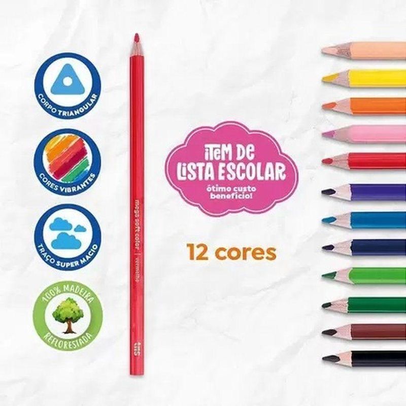 Lápis De Cor Mega Soft Color - 12 Cores - TrisLápis De Cor Mega Soft Color - 12 Cores - Tris -Lapis Cor Tris Mega Soft Color 12 Cores, corpo triangular, mina grossa 3, 3 mm, escrita super macia, cobertura incomparável, cores clássicas.Ótima pigmentação e muito macio!Características Gerais do Produto: