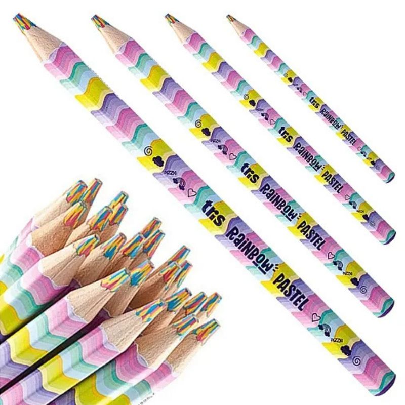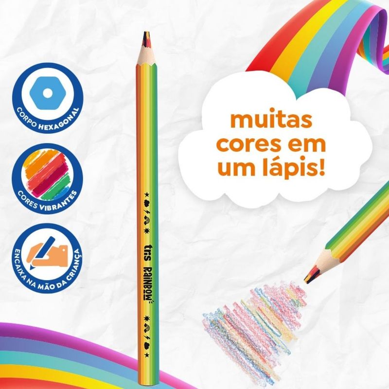 LÁPIS DE COR RAINBOW CLÁSSICO E PASTEL CARTELA COM 2 UN - TRIS São muuuuuuuitas cores em um lápis! Lápis de cor tamanho jumbo, com corpo hexagonal em madeira que encaixa na mão! Mina grossa de 5,5mm que evita a quebra. Agora também na combinação de tons pastel e clássico! Características: Marca: Tris Quantidade: Cartela 2 Unidades Indicado: + 3 Anos Registro INMETRO: 001964/2018