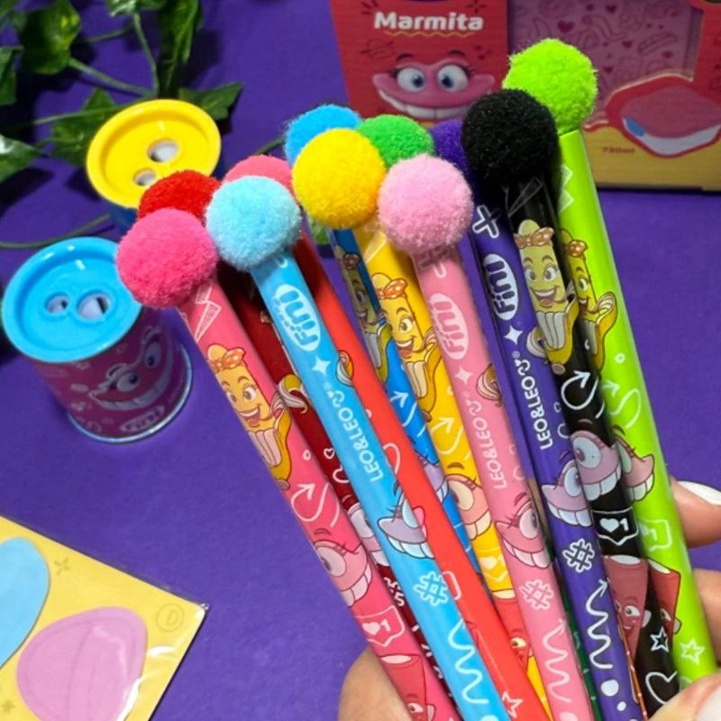 LÁPIS DE COR TRIANGULAR COM POMPOM FINI - POTE COM 12 UNIDADES - LEO&LEO Lápis inspirado nos personagens mais doces, com formato diferenciado e com um lindo pompom na ponta. Assim é o Lápis de Cor Triangular com Pompom Fini - Pote com 12 Unidades Leo&Leo. Com o corpo todo estampado, ele é um lápis de cor de resina com 12 cores incríveis, todas relacionadas diretamente com os famosos e fofos personagens da Fini, a gigante mundial dos doces. É macio para pintar e possui formato triangular, que se adapta perfeitamente à mãozinha da criança. Sua ponta é resistente e oferece mais tempo de uso, além de ser mais fácil de apontar. Além disso tudo, ele vem com uma fofura a mais que vai conquistar a todos: um pequeno e lindo pompom na ponta, deixando o lápis muito mais charmoso e delicado. Produzidos com material atóxico, os Lápis de Cor Triangular com Pompom Fini dão mais segurança para as crianças, sendo o jeito mais divertido de desenhar, pintar, rabiscar, estimular a criatividade e a imaginação dos pequenos. DETALHES DO PRODUTO: 12 unidades de lápis; Cores dos personagens da temática; Formato triangular; Corpo estampado com os personagens; Macio para pintar; Atóxico; Certificado INMETRO. Composição: Resinas, pigmentos e ceras. INMETRO: OCP 0116 REGISTRO: 007059/2018