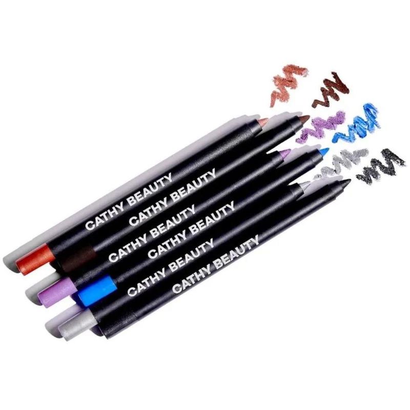 **Lápis Delineador Cateyes Cathy Beauty Sunrise Blue 1,4g** **Lápis delineador para olhos**, à prova d' água com consistência macia e fácil deslize. **Cateyes é apontável.** Sua fórmula de longa duração garante que o delineado permaneça impecável durante o dia, sem borrar ou desbotar. **Disponível em 6 tons** **Modo de usar:** Comece aplicando rente à linha dos cílios superiores, desde o canto interno até o externo, ajustando a espessura conforme seu estilo preferido. Se quiser um efeito esfumado, espalhe suavemente com um pincel. **Sobre a marca:** Cathy Beauty é uma marca de cosméticos 100% brasileira. A Cathy Beauty revolucionou o universo de beleza com esmaltes, maquiagens e produtos trendys com fórmulas 100% veganas e cruelty free. Fashion, cool e luxuosa, inovadora e de alta qualidade. **Especificações:** - Sem parabenos e Hipoalérgico. - Oftalmologicamente e Dermatologicamente testado. - Embalagem Biodegradável. - Contém 1,4g
