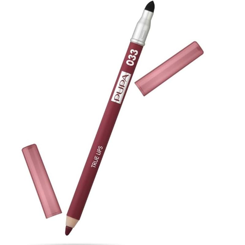 Lápis Labial True Lips Pupa 033 Bordeaux 1,2gBatom para lábios perfeitamente desenhados e definidos, com cor intensa e ultrapigmentada. Dupla utilização: pode ser usado sozinho para um efeito mate sofisticado ou por baixo do batom para prolongar a duração e criar um efeito barreira. A ponta é macia e desliza suavemente, facilitando o uso. O aplicador de látex ajuda a distribuir a cor uniformemente.Sua fórmula é suave e de alta cobertura. Contém vitamina E e vitamina C, com propriedades antioxidantes, e óleo de algodão, com propriedades hidratantes e emolientes.Modo de usar:Aplique o lápis de contorno labial começando pelo centro do lábio superior, delineando o contorno com uma linha fina e contínua. Repita no lábio inferior, desta vez começando pelo canto externo e terminando no centro. Esfume o delineado em direção à parte interna dos lábios usando o aplicador de esfumar integrado. Em seguida, aplique um gloss para um efeito natural ou um batom para um efeito sofisticado.