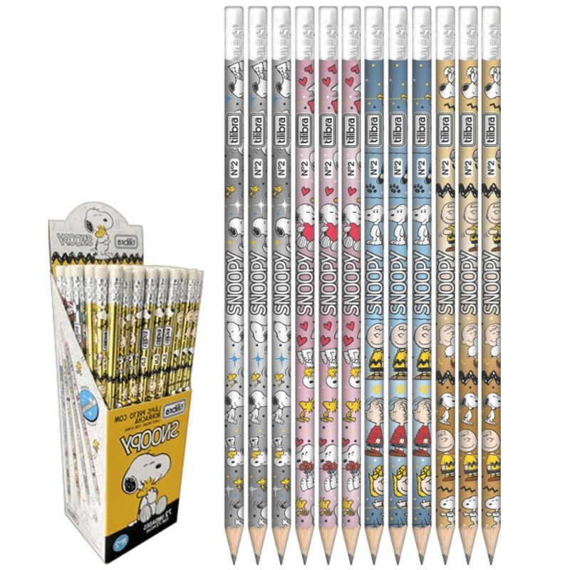 LAPIS PRETO REDONDO C/ B0RRACHA N2 SNOOPY - 1 UNIDADE - TILIBRA Já imaginou ter o cachorrinho mais famoso do mundo ao seu lado nos estudos? Isso se tornou possível com o Lápis Preto Redondo com Borracha nº2 Snoopy da Tilibra. O produto, fácil de apontar, resistente e com um traço macio, é ideal para escrita e desenhos. Certificado pelo Inmetro, o lápis preto escolar da Tilibra vem unitário com 190 mm de comprimento, borracha na ponta e corpo redondo, com efeito metalizado e estampa do Snoopy.Leve já o lápis preto do Snoopy e tenha sempre à mão um item confiável, bonito e eficiente para suas necessidades de escrita."Alta qualidade: SimCódigo de barras individual: SimEstampas sortidas: SimFácil de apontar: SimMadeira: SimMaior resistência e durabilidade: SimModelo: RedondoNº2: SimProduto certificado: INMETRO (Artigo Escolar/Segurança) - Registro 002525/2022Suave na sensação da escrita: Sim