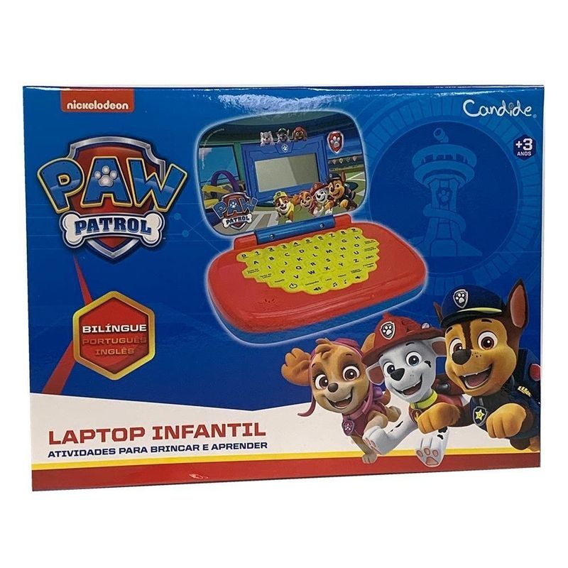 Laptop Infantil Educativo Candide Patrulha Canina BilíngueChase, Marshall, Rubbie e Skye estão em uma animada aventura! Você pode aprender brincando com o laptop do Paw Patrol! Este incrível laptop infantil é bilíngue (português e inglês) e possui diversos grupos de atividades, como: soma e divisão, perguntas e respostas, letras, palavras, ortografia e música! A brincadeira vai ficar muito mais divertida com seus personagens favoritos!Resumindo:- Chase, Marshall, Rubbie e Skye estão em uma animada aventura!- Você pode aprender brincando com o laptop do PJaw Patrol!- Este incrível laptop infantil é bilíngue (português e inglês) e possui diversos grupos de atividades, como: soma e divisão, perguntas e respostas, letras, palavras, ortografia e música!- A brincadeira vai ficar muito mais divertida com seus personagens favoritos! INMETRO: IP-BRI-2598/2021-03 Fabricante: Candide Product.descriptionData.bulletPoint00: Patrulha Canina Toys.ageRecommendation.minimumManufacturerAgeRecommended: 4 YEARS Product.descriptionData.searchTerms00: Patrulha Canina Product.descriptionData.targetAudience00: Patrulha Canina Toys.productType.toysAndGames.materialType: Plástico Product.descriptionData.ncmCode: 95045000 Baterias ou pilhas inclusas (areBatteriesIncluded): Sim Precisa de baterias ou pilhas (areBatteriesRequired): Sim Regulamentações aplicáveis a produtos perigosos (supplierDeclaredDGHZRegulation): Não se aplica Cor: Multicolorido Material: Plástico Idade Recomendada: 4 YEARS Precisa de baterias ou pilhas: Sim Regulamentações aplicáveis a produtos perigosos: Não se aplica Baterias ou pilhas inclusas: Sim Código NCM: 95045000 Baterias e pilhas inclusas: Sim Idade: 2-4 anos SELO INMETRO_BB: IP-BRI-2598/2021-03 IDADE RECOMENDADA_BB: 3 a 6 anos Característica do produto: Brinquedo battery: a