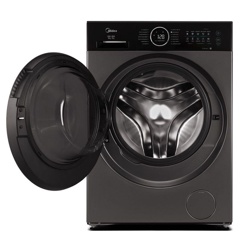 Lava E Seca 11kg Titanium Slim Storm Wash Conectada Midea MF210D110WB/GK-02 220VA Lava e Seca 11kg Titanium Slim Storm Wash Conectada Midea tem um Design Perfect Fit, que se encaixa perfeitamente em qualquer espaço, sem abrir mão da capacidade e da eficiência na lavagem.Com conectividade avançada, permite controlar diversas funções pelo aplicativo SmartHome ou por comando de voz com Alexa e Google Google Home. Você ainda recebe notificações, acessa programas exclusivos, como a Função Especialista, que recomenda o melhor ciclo de lavagem com base no tipo de roupa, cor e nível de sujeira, monitora o consumo de água e energia, e muito mais.Além disso, a tecnologia Storm Wash combina diversos fluxos de água e sabão, que penetram profundamente as fibras dos tecidos e removem até as manchas mais difíceis. ATENÇÃO: ESTA LOJA NÃO FATURA PARA CNPJ.Design Perfect Fit: Se adapta a todos os ambientes, ideal para espaços pequenos. O tamanho reduzido e o acabamento moderno garantem o encaixe perfeito.Storm Wash: 5 potentes fluxos de água e sabão, que penetram profundamente as fibras dos tecidos e removem até as manchas mais difíceis.Conectividade via aplicativo SmartHome: Controle sua Lava e Seca de onde estiver, inclusive por comando de voz (Alexa e Google Home).Origem: ImportadoProduto Altura (cm): 85 cmProduto Profundidade (cm): 53,5 cmProduto Largura (cm): 59,5 cmProduto Peso (kg): 66 kgConteúdo HTML:Produto Embalado Altura (cm): 88,5 cmProduto Embalado Peso (kg): 71 kgProduto Embalado Largura (cm): 68 cmProduto Embalado Profundidade (cm): 66,5 cmVariação: 11KgCor: TitaniumCapacidade total: 11KgCapacidade de secagem: 7kgProduto conectado: SimInverter: SimInteligência Artificial: NãoWifi: SimCompatível com o Aplicativo Midea: SimCompatível com Alexa e Google: SimTipo: Lava e Seca Front Loading AutomáticaAcesso ao cesto: FrontalMaterial interno (cesto): Aço inoxMaterial externo: Plástico / Aço / VidroCor da cabine: TitânioCor da porta: PretaCor interna: InoxProgramas (quantidade): 14 + 5 no APPProgramas: Favorito | Algodão | Roupa Esportiva | Roupa Bebê | Esterilizar | Centrifugação | Secar | Rápido 15'|60' | Desodorizar | Super Eco | Delicado/Lã | Pesado | Cama/Banho | Limpeza do CestoCiclos disponíveis: Pré-lavagem | Lavagem | Enxágue | Centrifugação | SecagemAcompanhamento dos estágios de ciclo: SimFunções (quantidade): 14Funções: Turbo | Centrifugar | Enxágue+ | Nível de sujeira | Favorito | Remoto | Vapor | Travar | Temperatura | Adiar fim | Secar | Pré-lavagem | Molho | + RoupasModo Desodorizar: SimFunção incluir roupas: SimTecla nível de sujeira: NãoTecla iniciar pausar: SimPainel: Touch + Botão LunarTrava no painel: SimDisplay: LEDCor do display: Azul e BrancoTipo de trava: EletrônicoPés ajustáveis: SimPainel com aviso de erro: SimRange de Temperatura: 127V: Água fria: 20°C: 30°C: 40°C: 50°C: 60°C/ 220V- Água fria: 20°C: 30°C: 40°C: 60°C: 90°CVelocidade de centrifugação (rpm): 1400 RPMTimer: SimTipo do Motor: BLDCLuz no cesto: SimFiltro: SimDispenser: Sabão e amacianteTipo de água: Fria e quenteConsumo de Energia: Água Fria (kWh/ciclo) (127v): 0,25Consumo de Energia: Água Fria (kWh/ciclo) (220v): 0,27Consumo de Energia: Água Quente (kWh/ciclo) (127v): 1,64Consumo de Energia: Água Quente (kWh/ciclo) (220v): 1,7Eficiência de Lavagem: Água Fria (127v): 0,91Eficiência de Lavagem: Água Fria (220v): 0,91Eficiência de Lavagem: Água Quente (127v): 0,96Eficiência de Lavagem: Água Quente (220v): 0,99Consumo de Água (L/ciclo) (127v): 67,0Consumo de Água (L/ciclo) (220v): 61,0Selo Procel: SimFrequência (Hz): 60HzPotência (W) (220v): 60HzTipo de tomada: 10 APotência Sonora (Nível de Ruído) (dB(A)): 76ENCE: SimItens inclusos na embalagem: Máquina de lavar | Mangueira de entrada de água | Tampões de fechamento | Suporte para mangueira de saída de água | Protetor para rato | Manual do usuárioGarantia do Produto: 24 mesesCódigo do Produto: MF210D110WB/GK-01.MF210D110WB/GK-02Tipo de Máquina de Lavar: AutomáticaMarca: MideaTipo de Carga: FrontalCapacidade da Máquina de Lavar: 11 kg