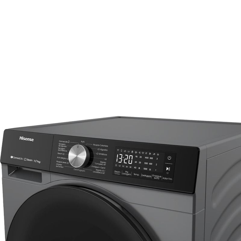 Eficiência e conforto em uma só máquina A Lava e Seca Hisense WD3S11 é uma solução prática e moderna para otimizar sua rotina na lavanderia. Com design elegante e tecnologia de ponta, essa máquina combina desempenho excepcional e conveniência, permitindo que você lave e seque suas roupas com facilidade. Ideal para famílias que buscam economia de tempo e espaço sem abrir mão da qualidade. Potência e qualidade em cada ciclo Com capacidade de lavagem de 11kg e secagem de 7kg, esse eletrodoméstico é um verdadeiro aliado no cuidado com suas roupas. O Motor Inverter proporciona operação silenciosa e eficiente, além de maior durabilidade. A função Steam remove manchas difíceis e higieniza as peças com vapor, oferecendo frescor e limpeza profunda. Com 13 programas de lavagem, você encontra o ciclo ideal para cada tipo de tecido, seja delicado ou pesado. Controle inteligente e sustentabilidade A praticidade é elevada a outro nível com o Painel Touch intuitivo e a conectividade Wi-Fi, permitindo controle remoto via aplicativo. Ajuste as configurações, acompanhe os ciclos e receba notificações diretamente no seu smartphone. Além disso, a Lava e Seca Hisense WD3S11 é projetada para economizar água e energia, alinhando-se a um estilo de vida sustentável e reduzindo os custos domésticos. Transforme sua rotina de cuidados com as roupas em uma experiência eficiente e ecológica.