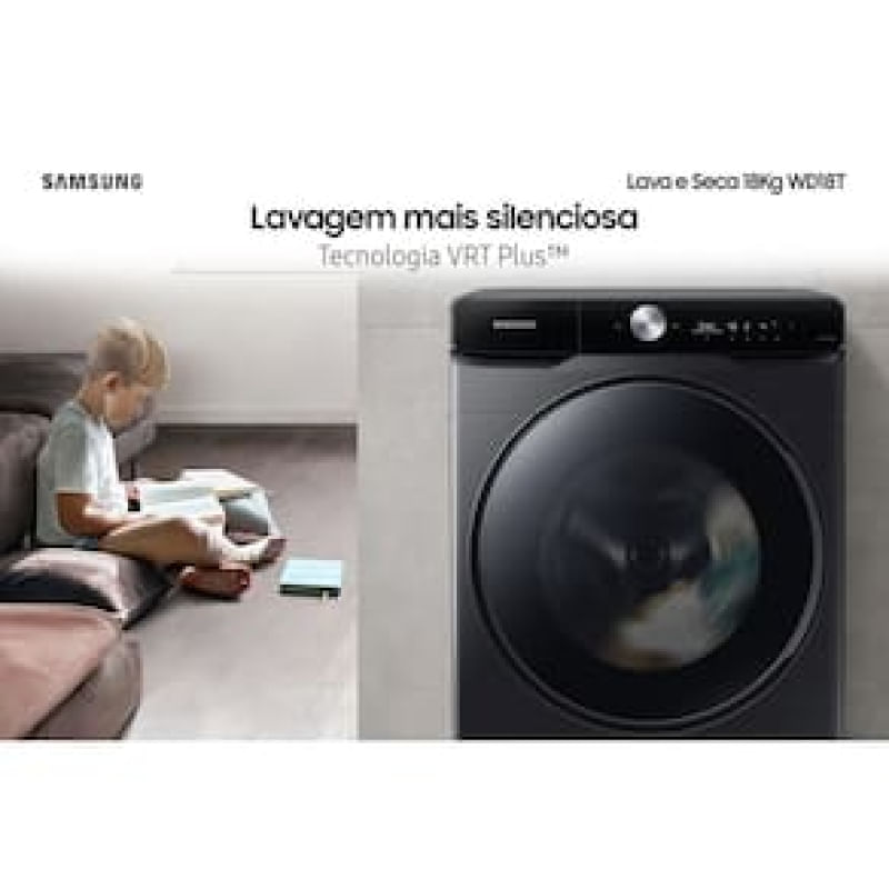 Se você procura uma lavadora moderna, a Lava e Seca Samsung WD18T, é perfeita. Ela tem capacidade para lavar 18kg de roupas e secar 10kg em um mesmo ciclo. Economia de tempo, água e energia para você e toda a sua família.Com um painel de controle intuitivo, essa máquina de lavar inteligente e conectada identifica os hábitos de lavagem da sua família e recomenda os seus ciclos favoritos. Ela ainda exibe durante a lavagem as informações mais importantes. Quer tornar o processo ainda mais simples? Com o app SmartThings você pode programar o horário da sua lavagem, obter dicas e recomendações do ciclo ideal, e até mesmo receber ajuda para conservar sua máquina.Prática, possui lavagem com IA utilizando 4 sensores inteligentes que identificam automaticamente a carga de roupas e calculam a quantidade ideal de água e sabão. E mais, sua tecnologia exclusiva Ecobubble produz bolhas de sabão que tornam a lavagem muito mais cuidadosa e poderosa.É a Lava e Seca da Samsung que vai revolucionar sua lavanderia!