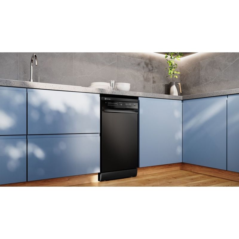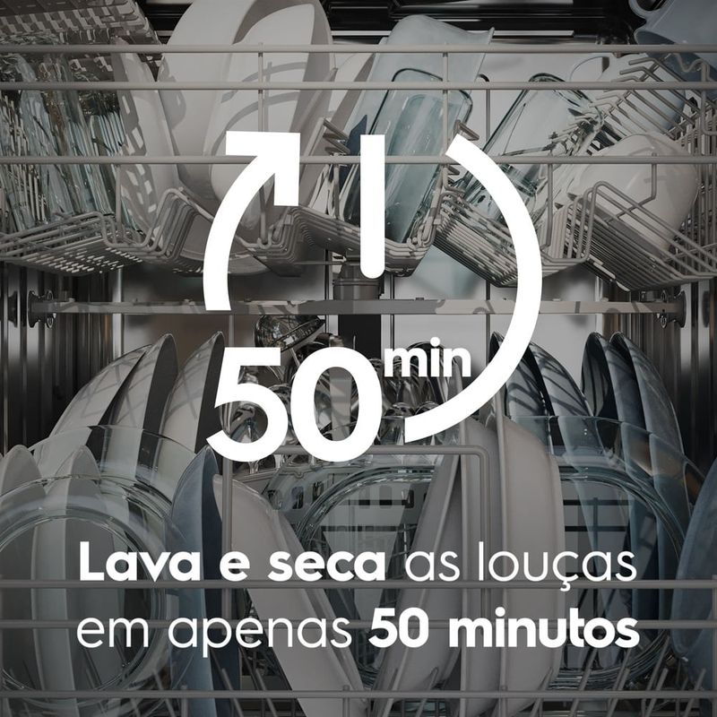 A Lava-Louça Electrolux 10 Serviços Preta com Programa Lava e Seca 50 min (LP10E) é o eletrodoméstico que faltava para deixar sua cozinha mais completa e cuidar da limpeza e da higienização da louça de maneira mais sustentável, gerando uma economia de até 92%¹de água por ciclo.Com o Programa Lava e Seca 50 min, você lava e seca as louças em apenas 50 minutos. É o programa mais rápido para lavagem e secagem do mercado², ideal para itens pouco sujos que precisam de limpeza rápida, mas eficiente.Já com o Programa Eco você tem a combinação ideal entre uma lavagem perfeita e economia de até 92% água e até 44% de energia elétrica³.Para assegurar a eliminação de até 99,99% dos germes e bactérias presentes nas louças, basta ativar a função Higienizar Louça 70°C4, que utiliza jatos de água a uma temperatura de até 70 °C.Além disso, para facilitar ainda mais seu dia a dia, o Display Digital com Controle do Tempo mostra quanto tempo falta para tudo estar limpo. Você consegue se organizar e ainda ganha mais tempo livre para fazer o que gosta.Que tal ter a louça limpa na hora em que quiser? Com o Programa Adiar Início, você pode lavar suas louças até 24h depois de ter carregado a lava-louça. E, com a Função de Secagem Extra, a água pós-enxágue seca com mais facilidade. O último enxágue é feito com água em maior temperatura para um resultado mais rápido e eficiente. Para quem tem receio de lavar itens delicados à mão, o Programa Delicado é a solução, pois lava louças delicadas e sensíveis, como taças de cristal, em alta temperatura, e você fica tranquilo porque tudo fica em seu estado original. Ainda tem pouca louça, mas não quer deixar na pia? Você pode usar o Programa Meia Carga, que lava pouca quantidade com baixo consumo de água e energia. Ou usar a Função Pré-lavar, que enxágua e retira o excesso de sujeira sem deixar cheiro, permitindo que você acumule louça para usar um ciclo completo. Para itens pouco sujos e que precisam de uma limpeza rápida e eficiente, use o Programa Express 30 minutos. Em poucos minutos, tenha suas louças prontas para usar novamente. Para garantir maior segurança para sua família, a Função Travar Painel evita que seu programa seja alterado ou acionado indevidamente. Por fim, a Lava-Louça Electrolux com Programa Lava e Seca 50 minutosapresenta um design moderno que agrega elegância ao ambiente. ¹15 minutos de torneira aberta com regulador de vazão e pressão até 6 mca de 0,13 litros/s (equivalente a 117 litros/15 min) , segundo “Programa de Uso Racional da Água” da SABESP, enquanto 1 ciclo por dia na máquina, no Programa Eco da lava-louça de 10 serviços equivale a 9 litros.²Programa com lavagem e secagem mais rápido do mercado com avaliação de marcas/produtos disponíveis no mercado em dezembro de 2024.³Estudo realizado pelo Laboratório de Análises Laboratoriais e Soluções em Microbiologia na eliminação de Escherichia coli (UFC), Pseudomonas aeruginosa (UFC) e Staphylococcus aureus. Os resultados podem variar de acordo com as condições de uso. Teste realizado no programa Dia a Dia.4Estudo realizado pelo Laboratório de Análises Laboratoriais e Soluções em Microbiologia na eliminação de Escherichia coli (UFC), Pseudomonas aeruginosa (UFC) e Staphylococcus aureus. Os resultados podem variar de acordo com as condições de uso. Teste realizado no programa Dia a Dia.