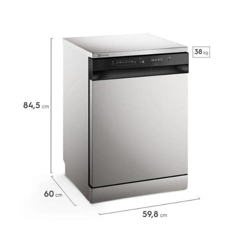 Lava-louça Electrolux 14 Serviços Inox Com Programa Lava E Seca 50' LS14E Inox 110VMedidas do produto sem embalagem 84,5 cm Altura 59,8 cm Largura 60 cm Profundidade 38 Kg Peso Especificações Capacidade 14 Serviços Consumo de água (L/ciclo) 11 Cor Inox Este Produto inclui Cesto para talheres Sim Wifi Não Diferenciais Pré lavagem Função Meia Carga Função Adiar início Painel Mecânico Programas Lava & Seca 50' Programa Eco; Programa Adiar Início; Programa Delicado; Programa Express 30’. Quantidade de pulverizadores 2 Tampa com visor transparente Não Trava painel Sim Dispenser para sabão Sim Sensor de sujeira Não Função adia lavagem Sim Função ECO Sim Função pré-lavagem SIm Especificações técnicas Instalação Não Modelo LS14E Dimensões (AxLxP) 84,5cmx59,8cmx60cm Peso bruto 41,5 Kg Capacidade 14 Serviços Garantia do produto 1 ano EAN-13 7909569479926 (127V), Altura do produto embalado 64,5 cm Largura do produto embalado 64,5 cm Profundidade do produto embalado 87,1 cm Peso do produto embalado 41,5 Kg Esterilização / Higienizar Sim Dispenser para Líquido Secante Sim Silenciosa Sim Visualizador de Etapas de Lavagem Sim Terceiro Hack Não Profundidade: 60 | Altura: 84,5 | Largura: 59,8 | batteries_required: Não | capacity: 0 | controls_type: Toque | external_testing_certification: . | included_components: Cabo de alimentação | item_depth_width_height: prof:0,645 alt:0,871 larg:0,645 | item_weight: 41,50 | manufacturer: ELECTROLUX | model_number: LS14E | noise_level: . | number_of_programs: 14 | part_number: LS14E | power_source_type: AC | warranty_description: 12 meses de fabrica | website_shipping_weight: 41,5 | bullet_point: Para assegurar a eliminação de até 99,99% das bactérias presentes nas louças, basta ativar a função Higienizar Louça 70°C4, que utiliza água a uma temperatura de até 70 °C | bullet_point1: lava louças delicadas e sensíveis, como taças de cristal, em alta temperatura, e sem risco de quebra ou outros danos | bullet_point2: Em poucos minutos, tenha suas louças prontas para usar novamente | annual_energy_consumption: 0 Cor: Inox Voltagem: 127V